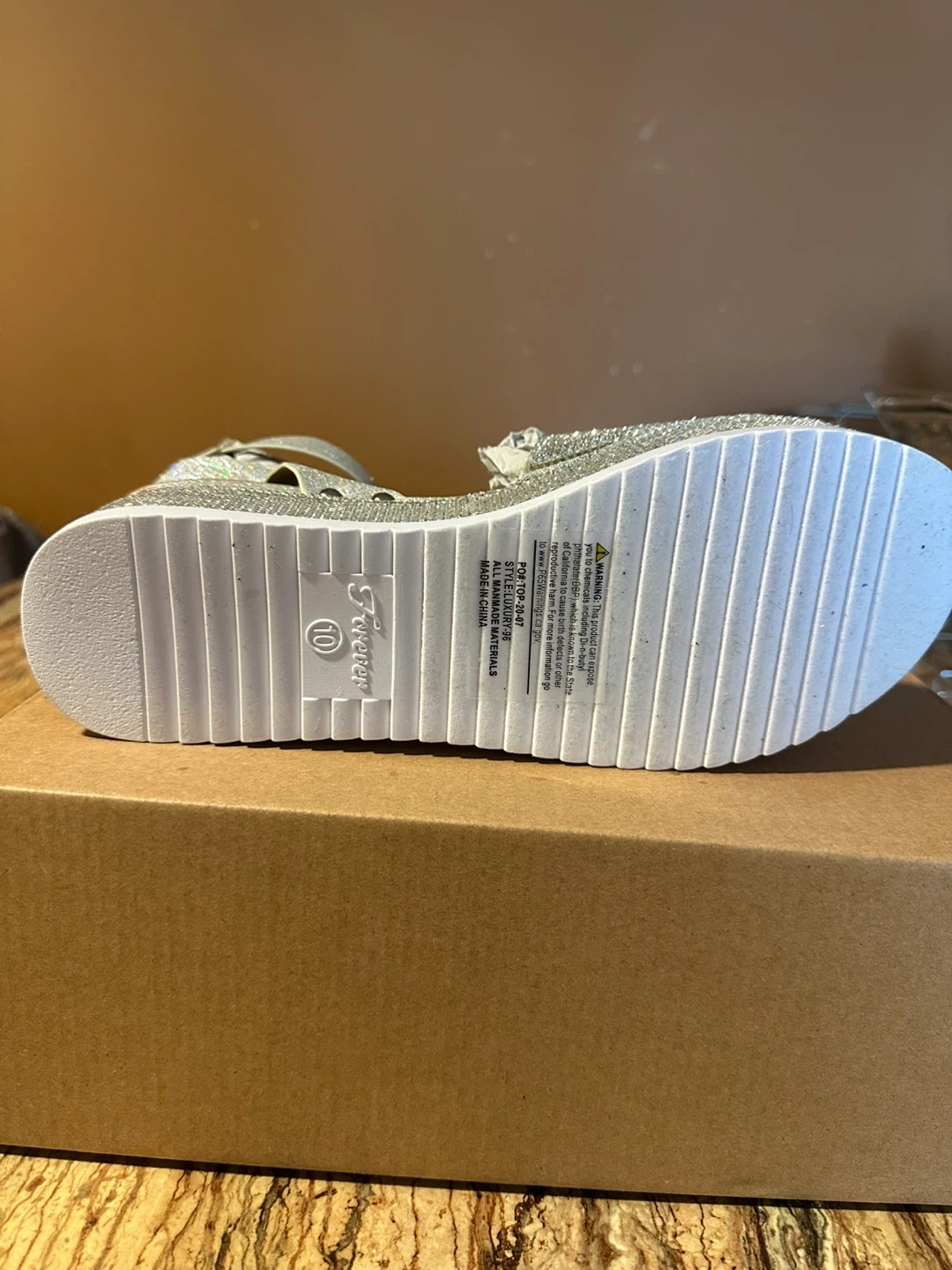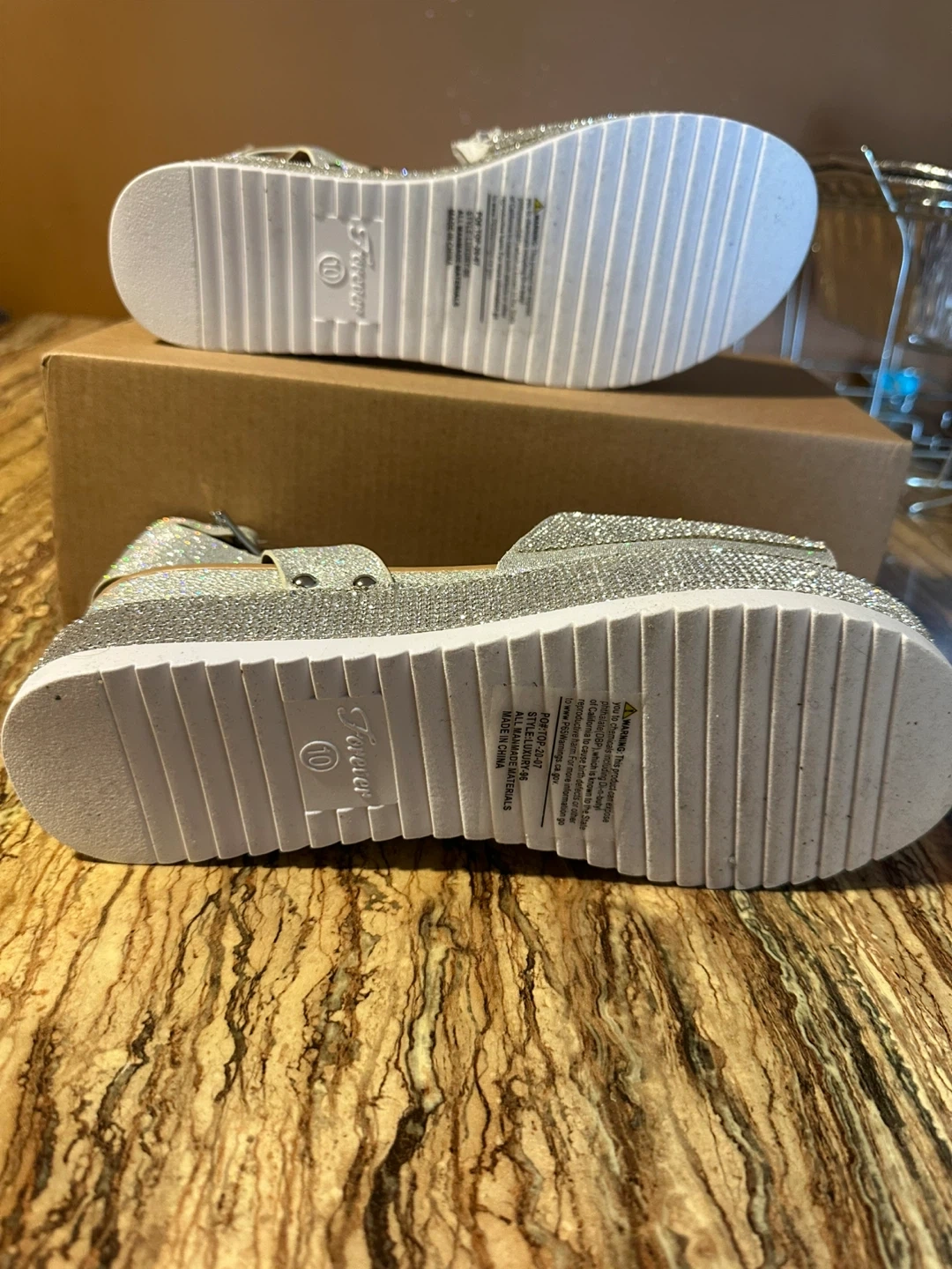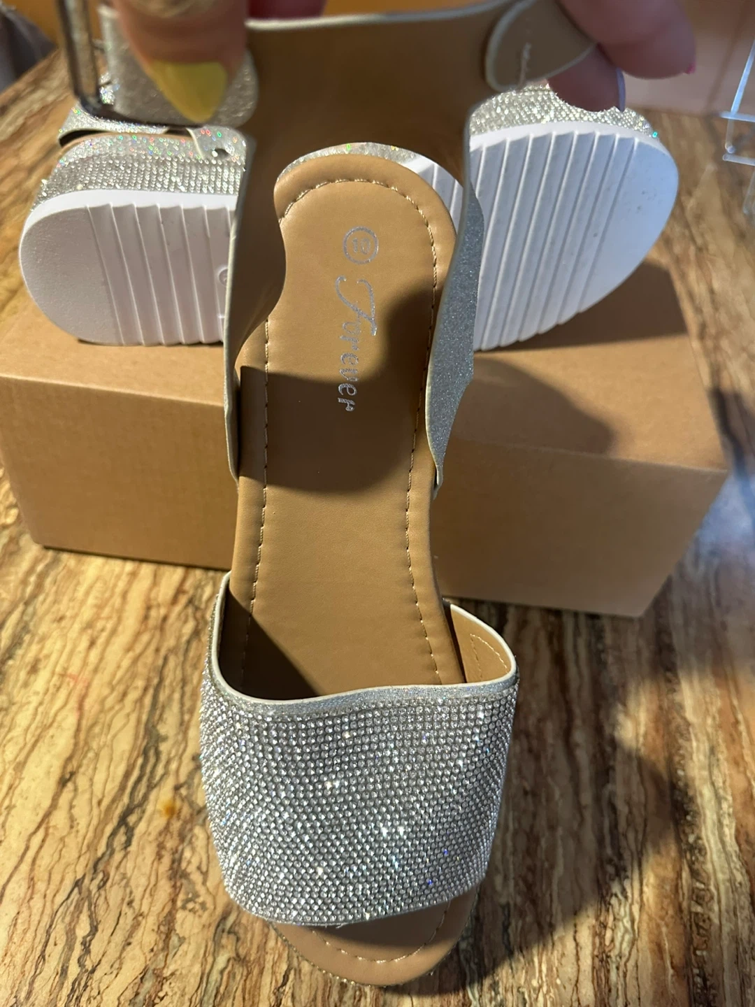 Forever Women's Silver Rhinestone Platform Sandals Size 10