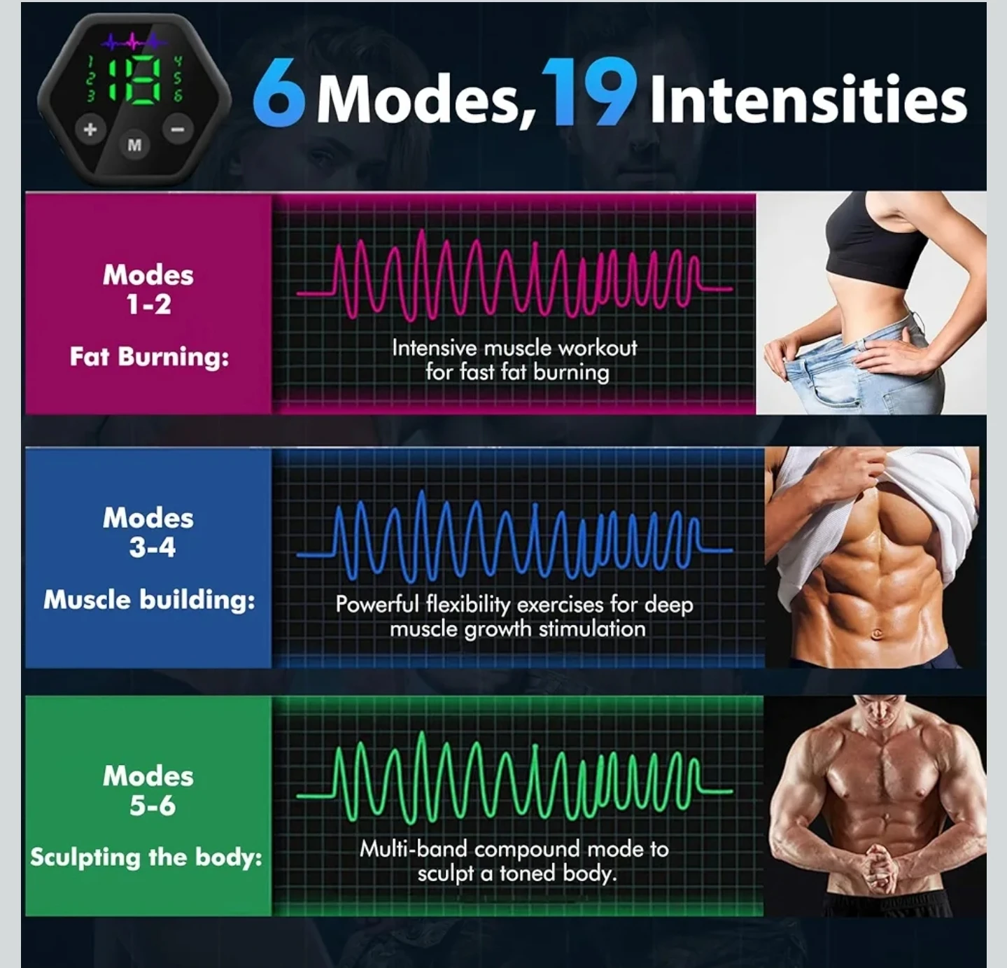 Ab Stimulator Muscle Toner, Electric Abs Stimulator Abdominal, 6 Modes & 19 Strengths Tactical X Abs , Body Control System Muscle Stimulator for Arms, Abdomen, Thighs and Buttocks