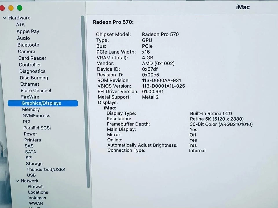 -Radeon Pro 570 4GB VRAM Graphics