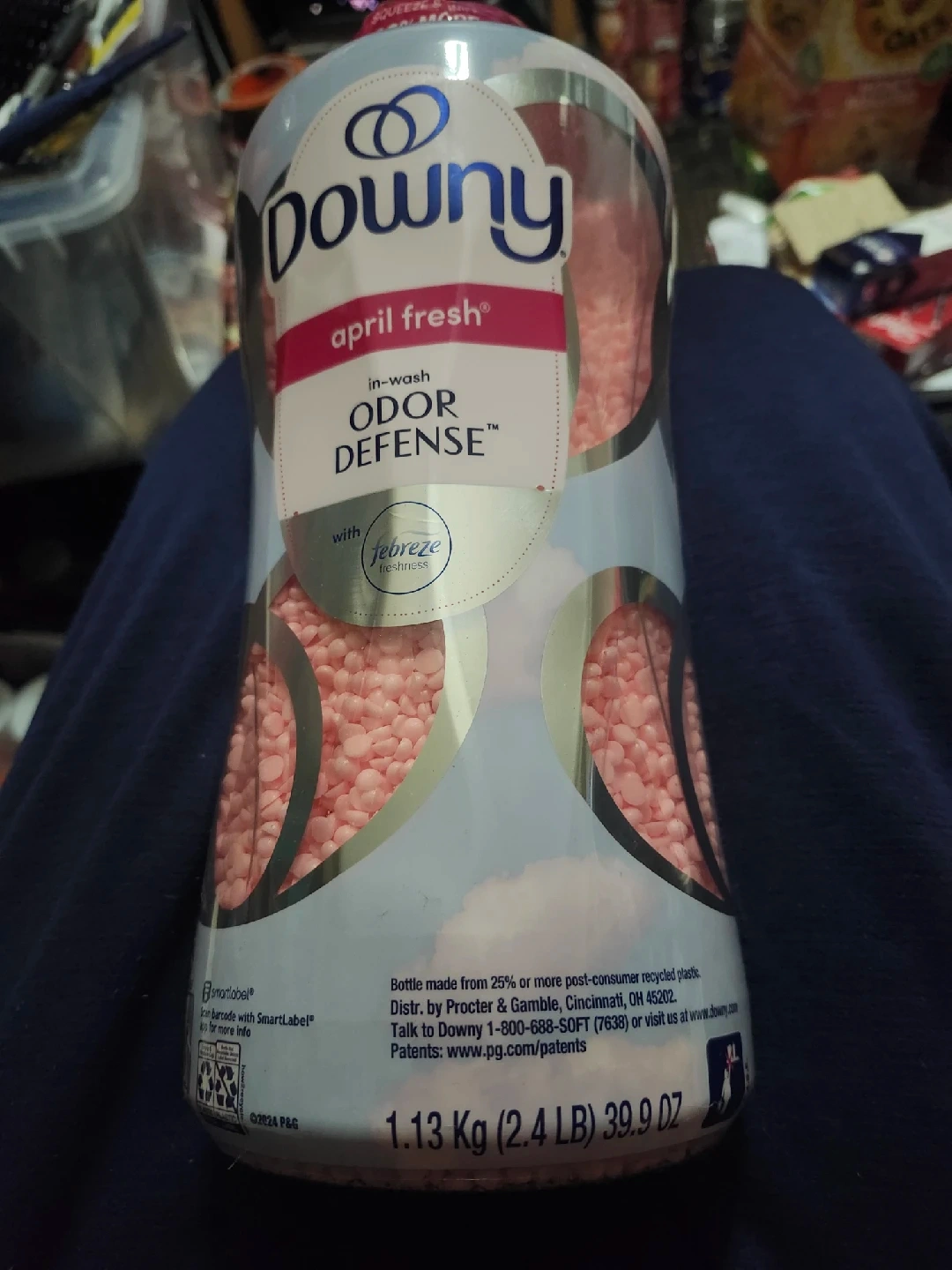 I'm selling a container of Downy April Fresh in-wash odor defense. It's 2.4 LB (1.13 Kg) and helps keep your laundry smelling fresh with Febreze freshness!