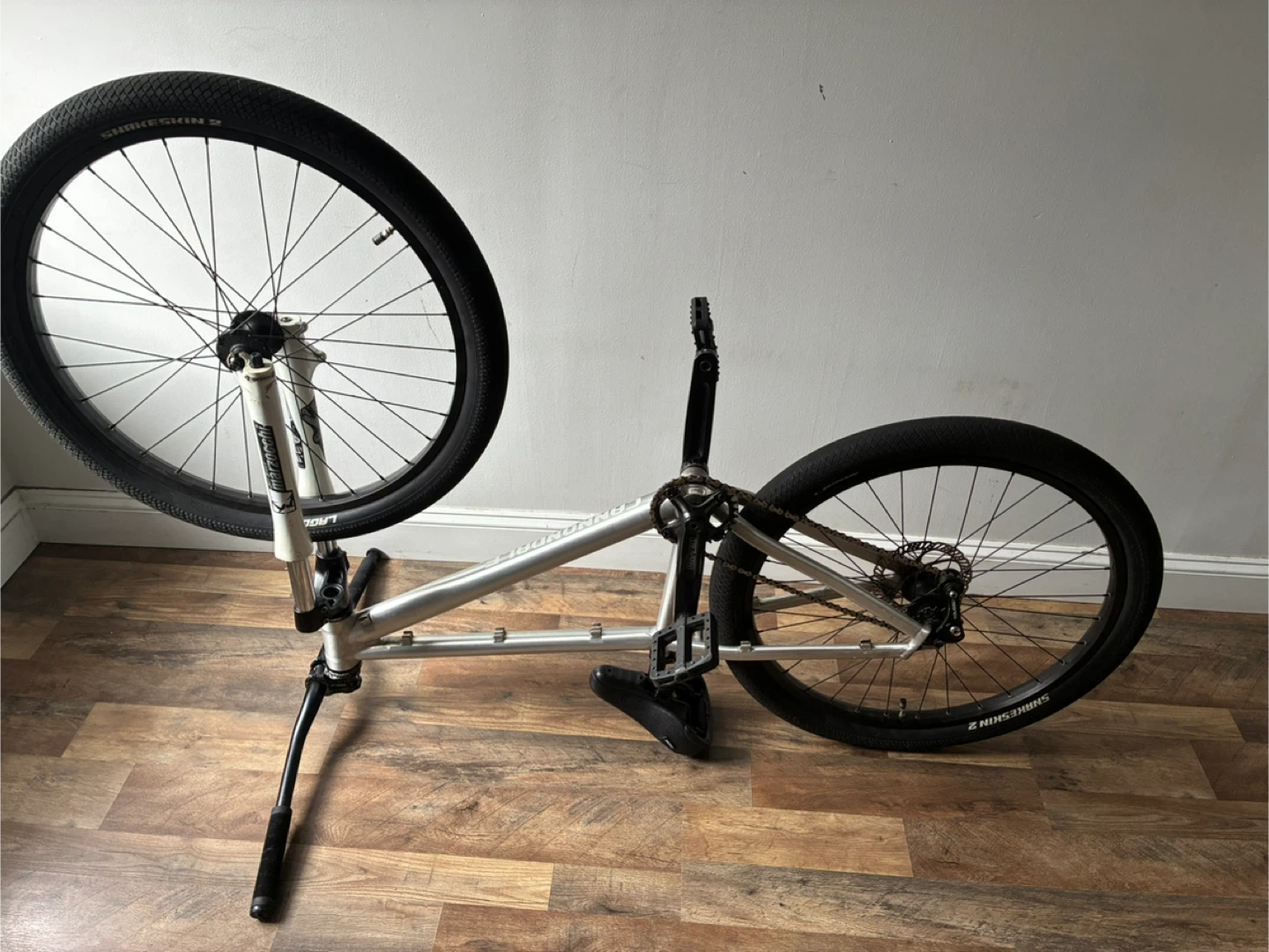 This is a Sunday Bikes "Forecaster" model. It features a durable frame and reliable components for riding. Aluminum rims and solid tires.