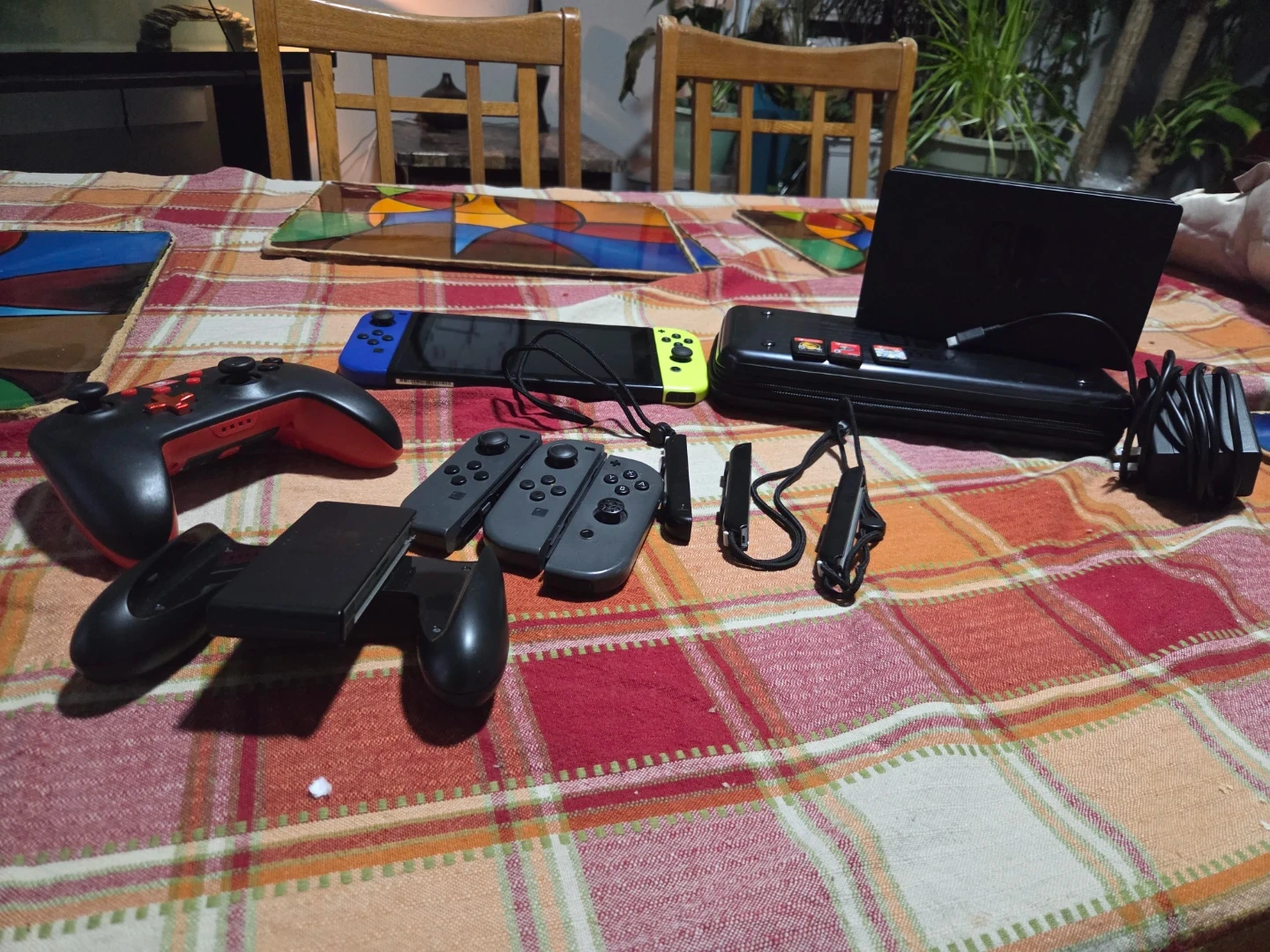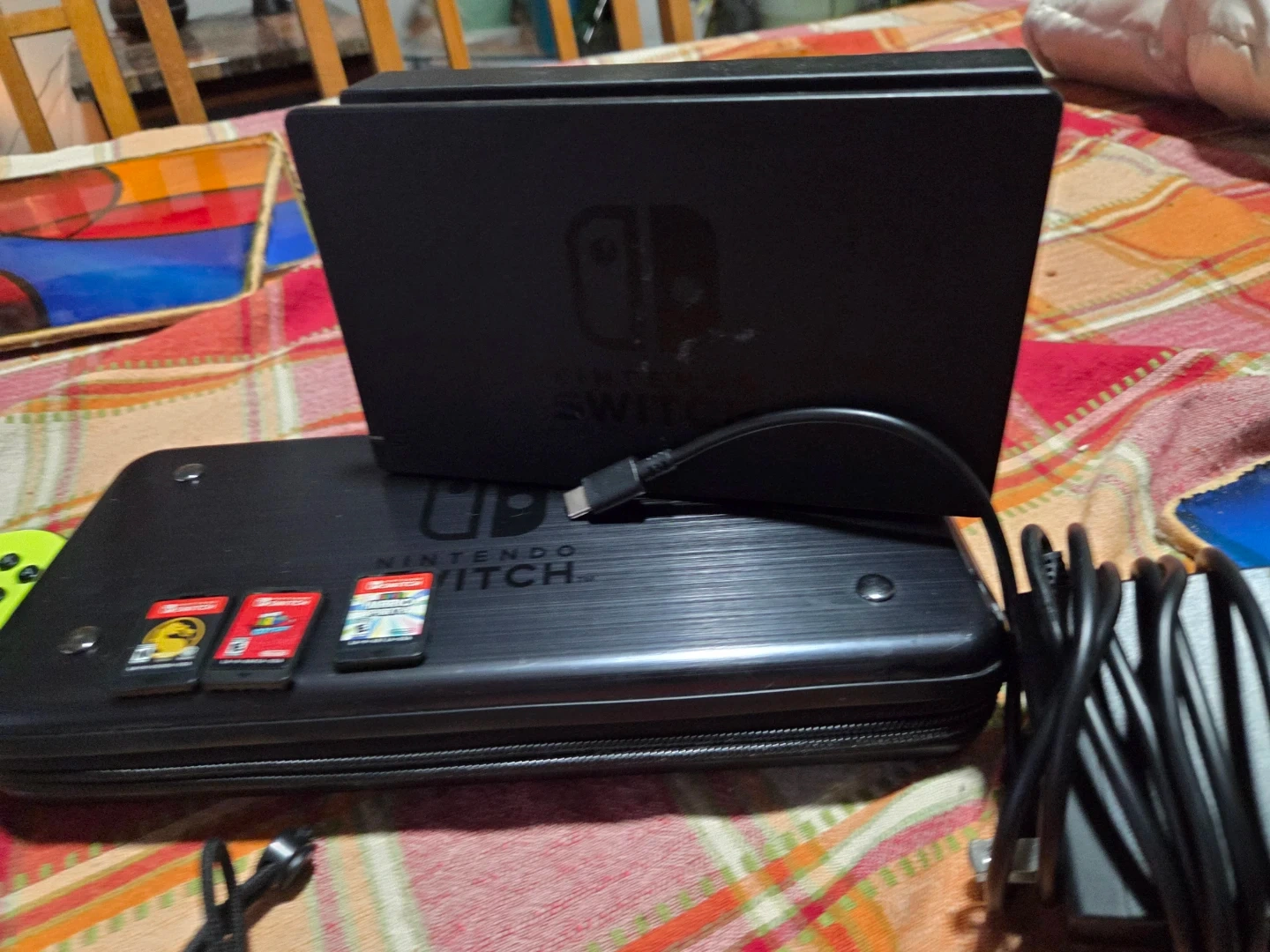 Selling a Nintendo Switch console bundle! Includes the console, dock, Joy-Cons, a Pro Controller, and a carrying case. Also comes with three games: Mortal Kombat, Super Mario Odyssey, and Super Mario Party