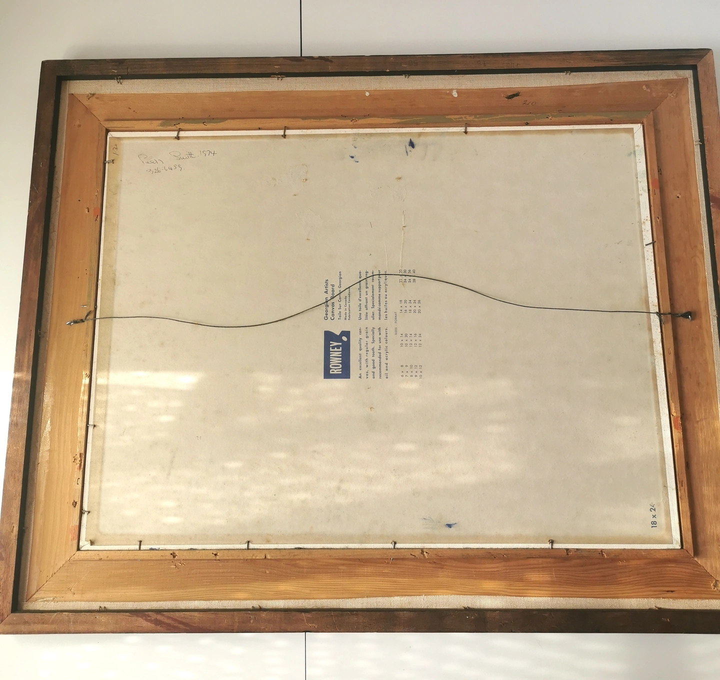 Measuring 24.25 inches in height and 30.25 inches in width, 1.5 inches in depth the medium-sized canvas painting is matted and framed, adding to its authenticity and value.