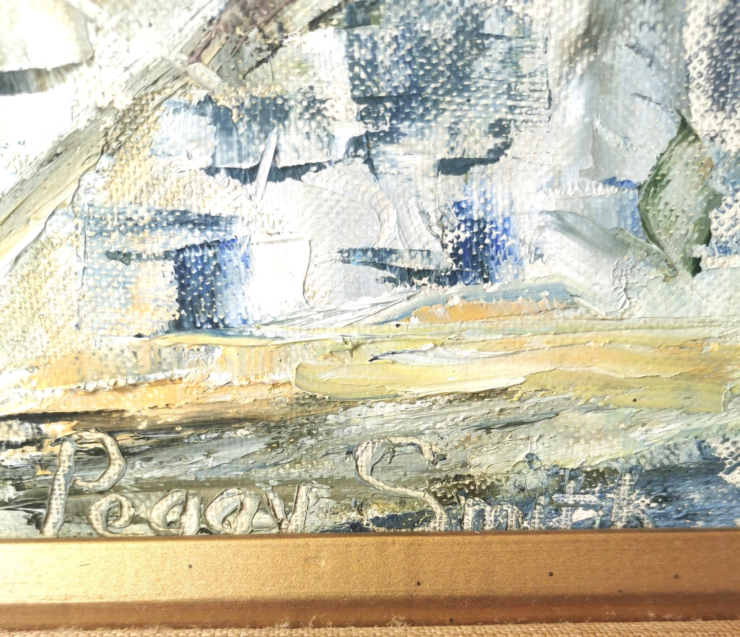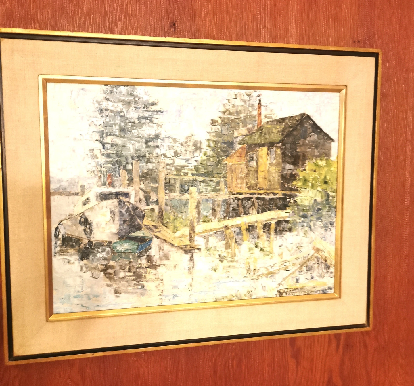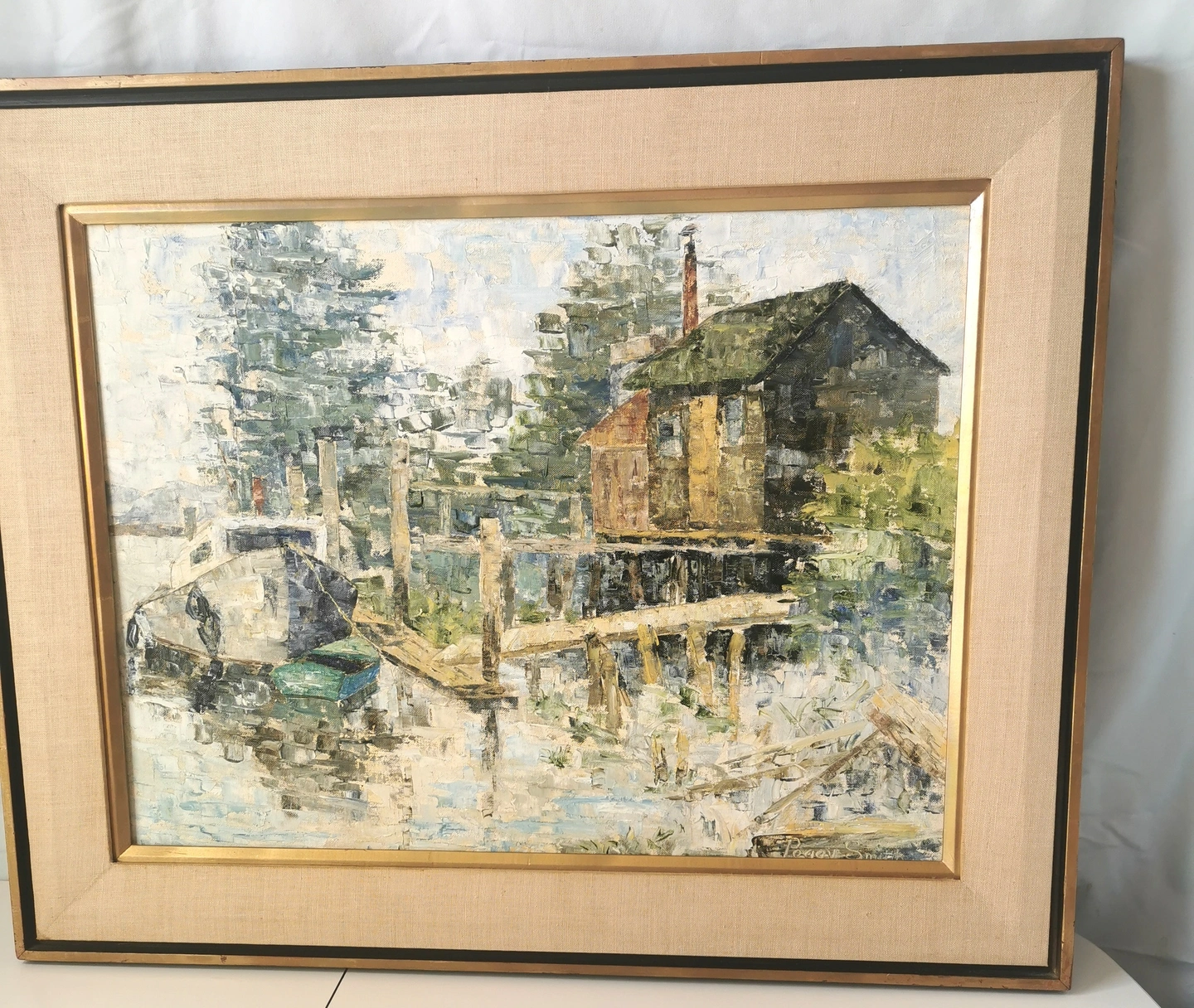 Original Oil Painting Waterfront by Peggy Hill Signed 1974