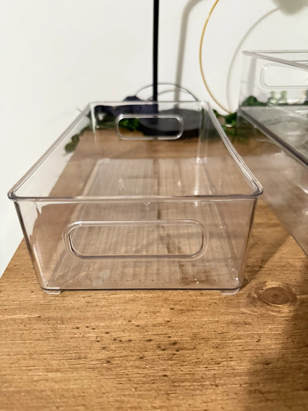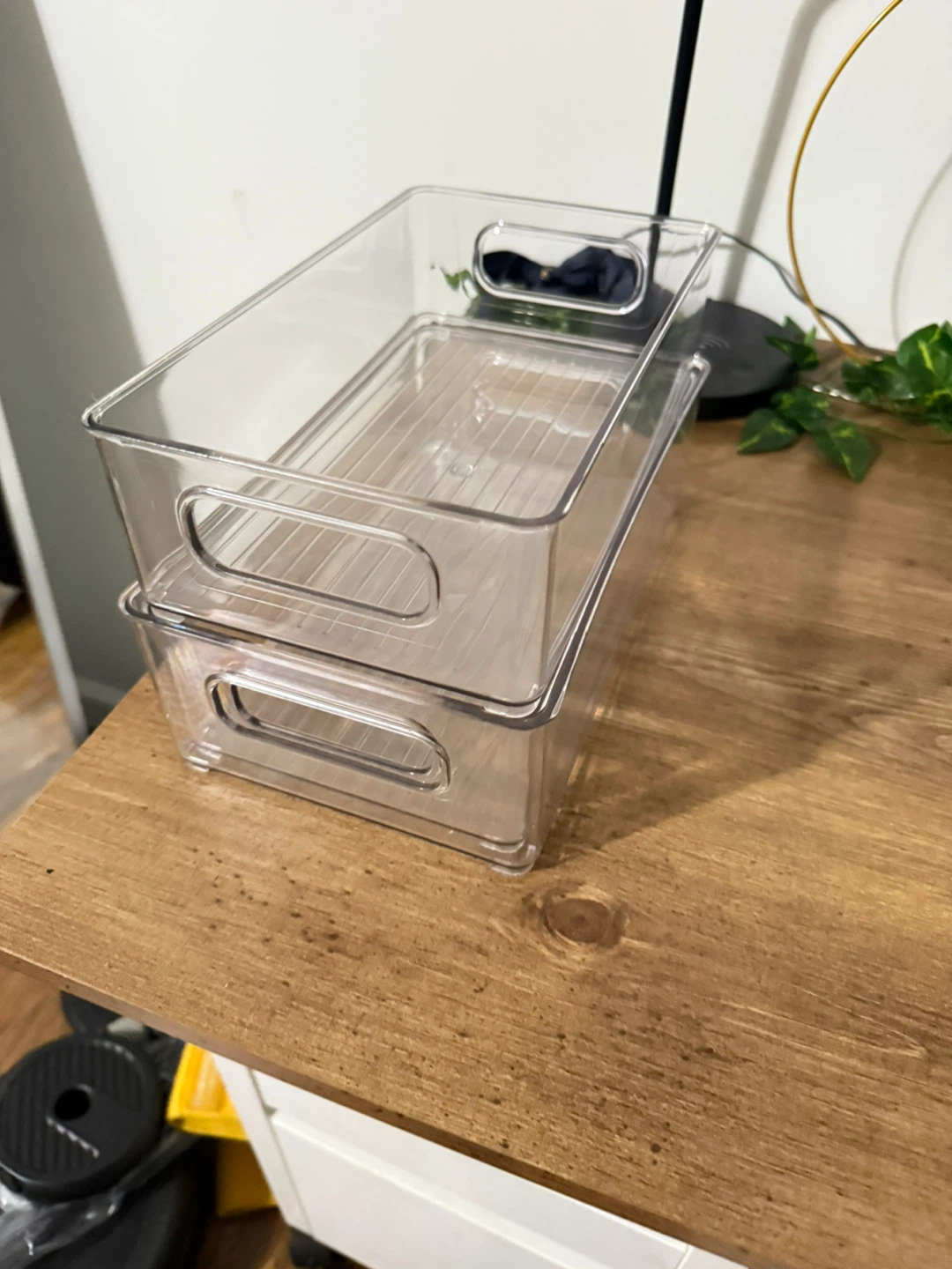 12 clear plastic storage bins are perfect for organizing drawers and cabinets. They're made of durable plastic and feature convenient built-in handles. Great for use in the kitchen, pantry, or closet! They come in varying in size, 10x5x6, 10x2.5x6, 10x2.75x6, 10x3x6.