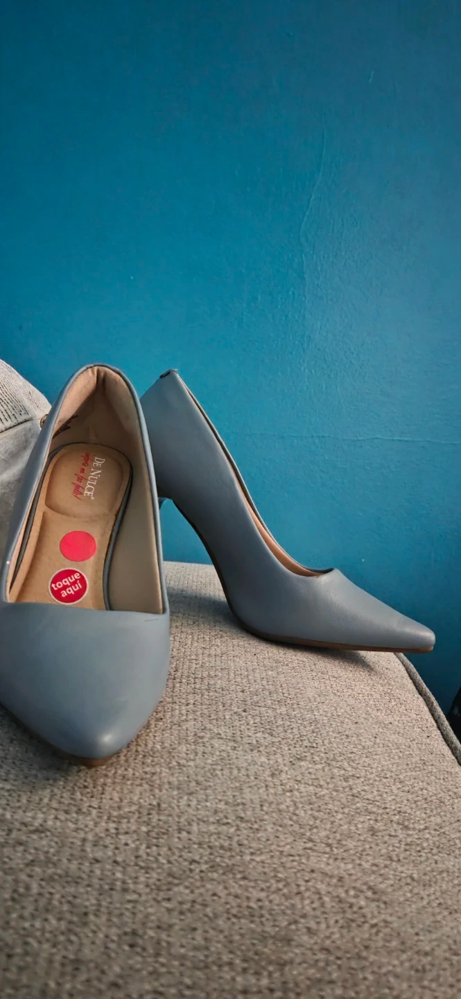 DE NLUCE women's blue pointed toe heels. Synthetic upper and sole. These pumps offer a classic silhouette and a comfortable padded insole. Perfect for elevating any outfit!