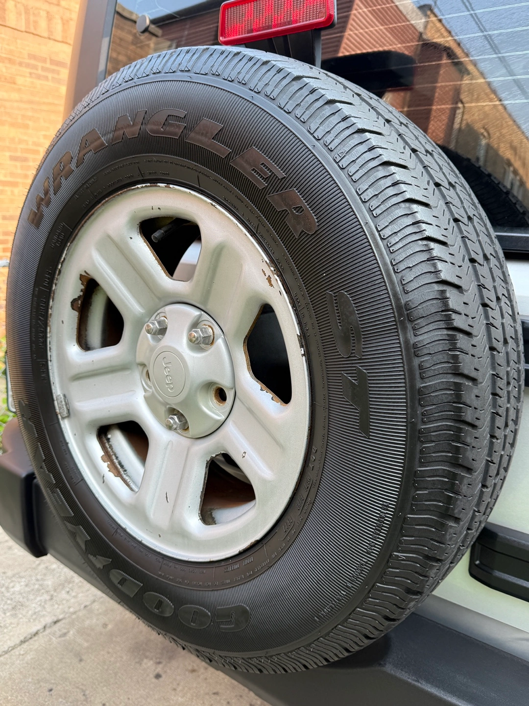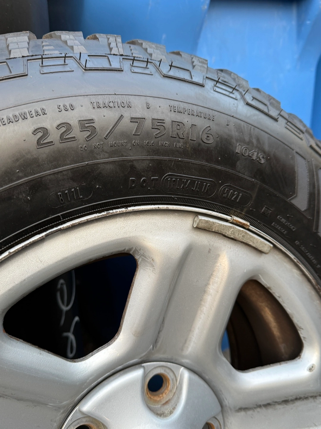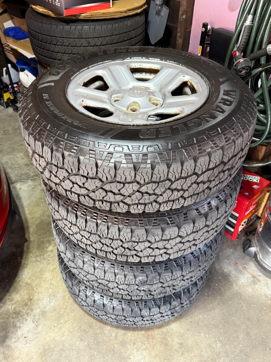 Jeep Wrangler 16” Steel Wheels and Goodyear new tires 225/75R16 Rims and Center caps good shape but some surface rust. The tires are basically brand new. $250 pick up in Portage Park