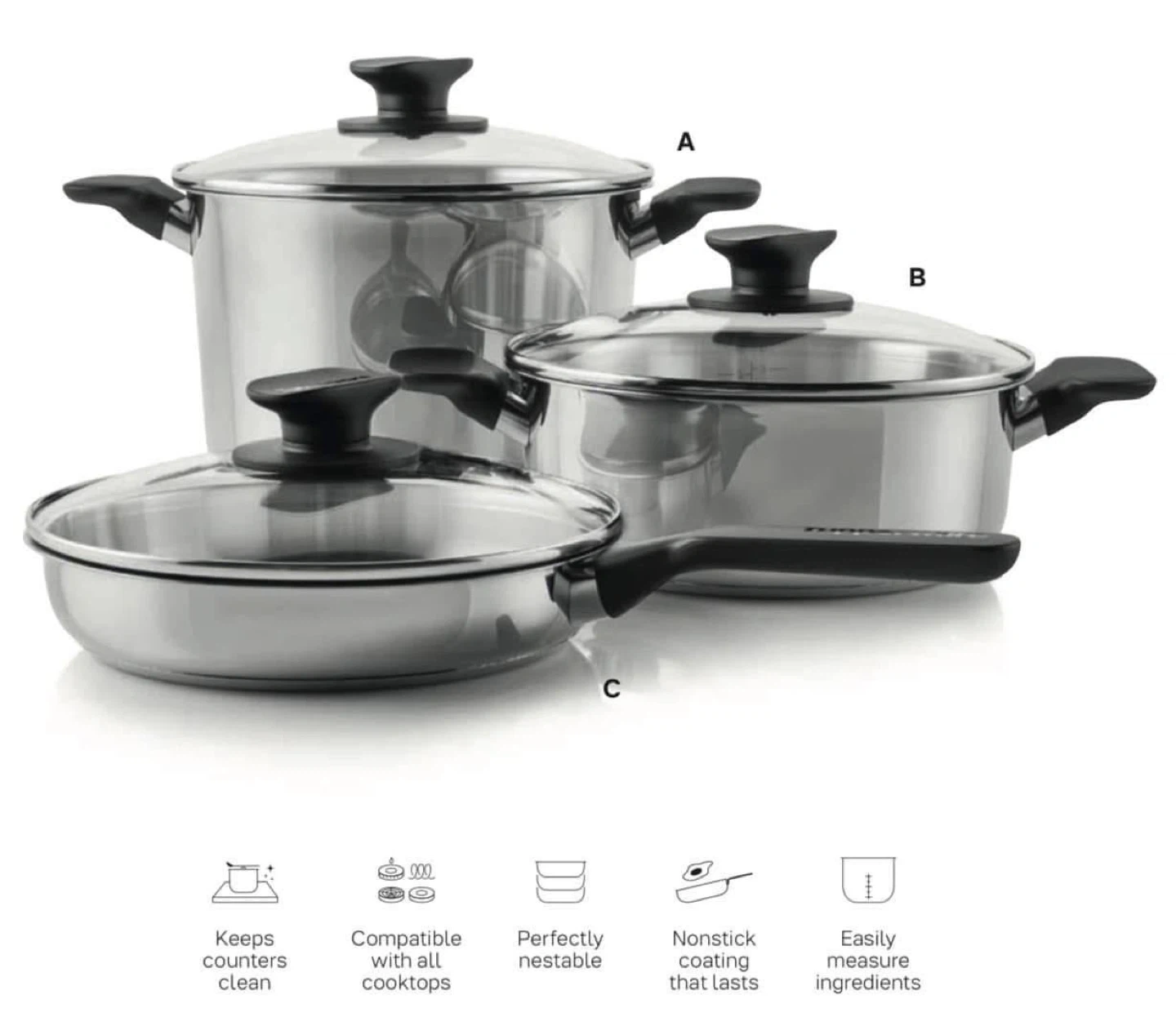 This Tupperware Universal Cookware Set includes a 7L stockpot and a 3.4L frypan with non-stick coating. It also comes with 2 lids. The cookware is compatible with all cooktops and is designed to be perfectly nestable for easy storage. Nonstick coating that lasts!