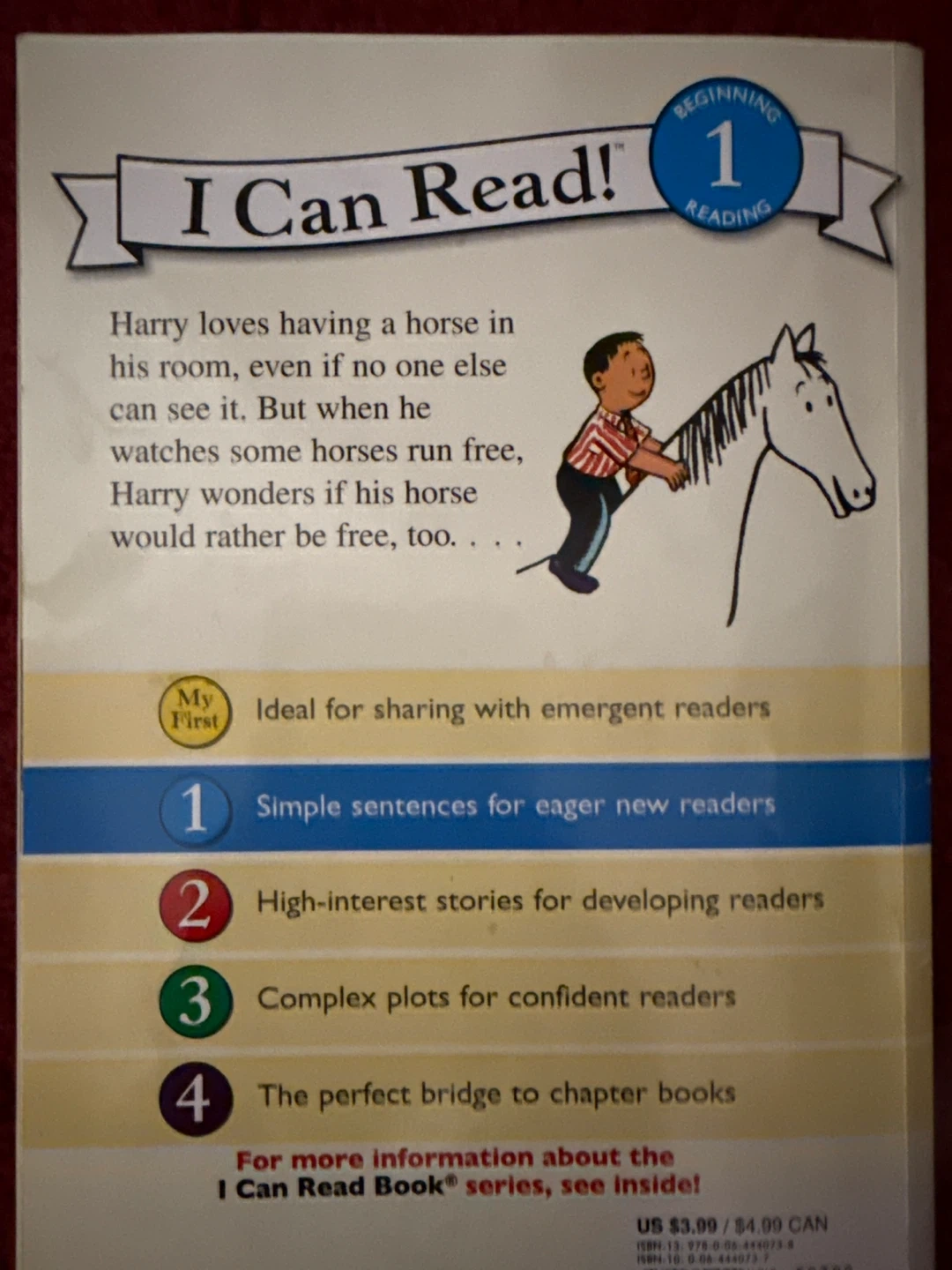 I'm selling the book "The Horse in Harry's Room" from the "I Can Read!" series by Syd Hoff