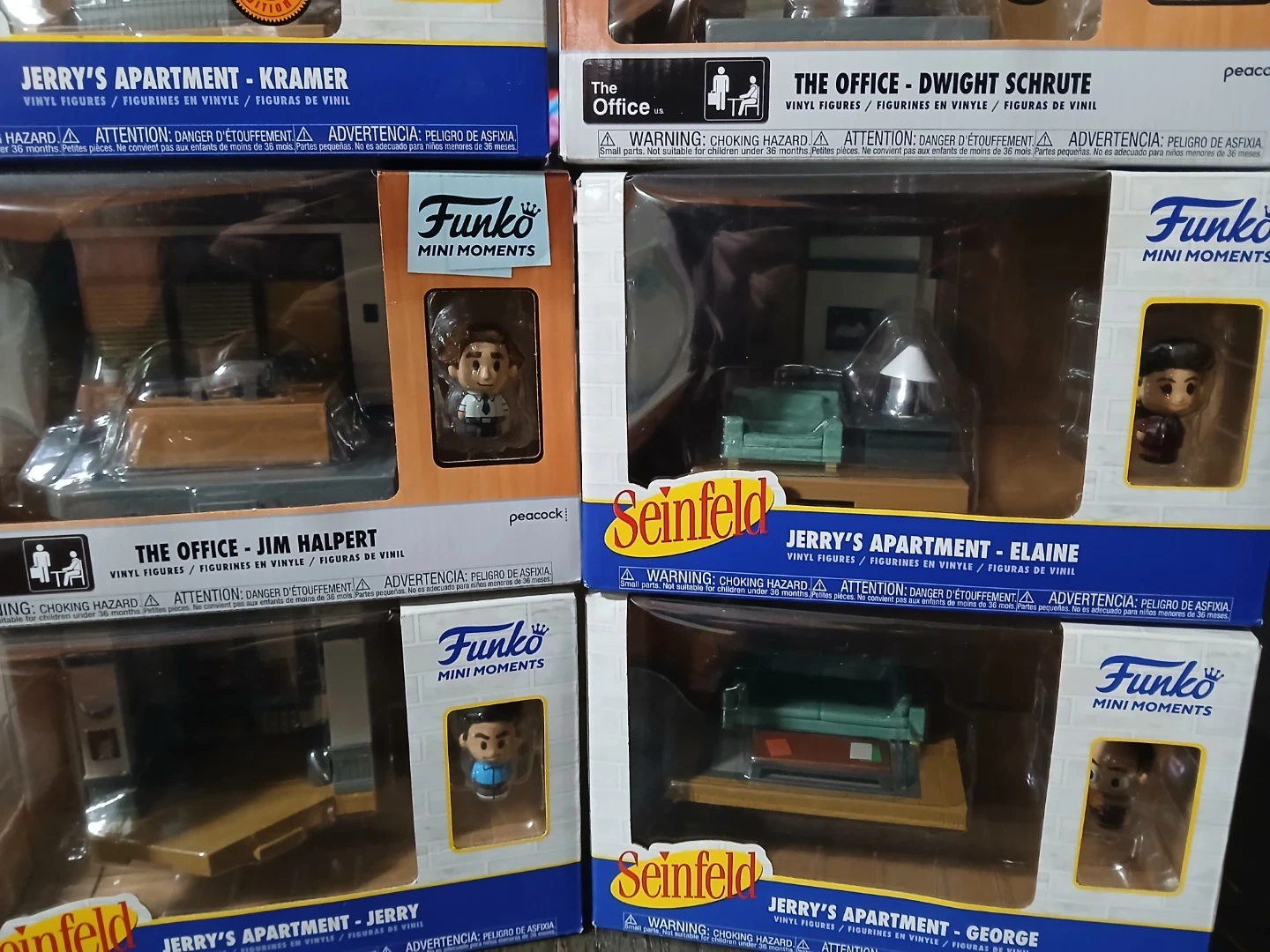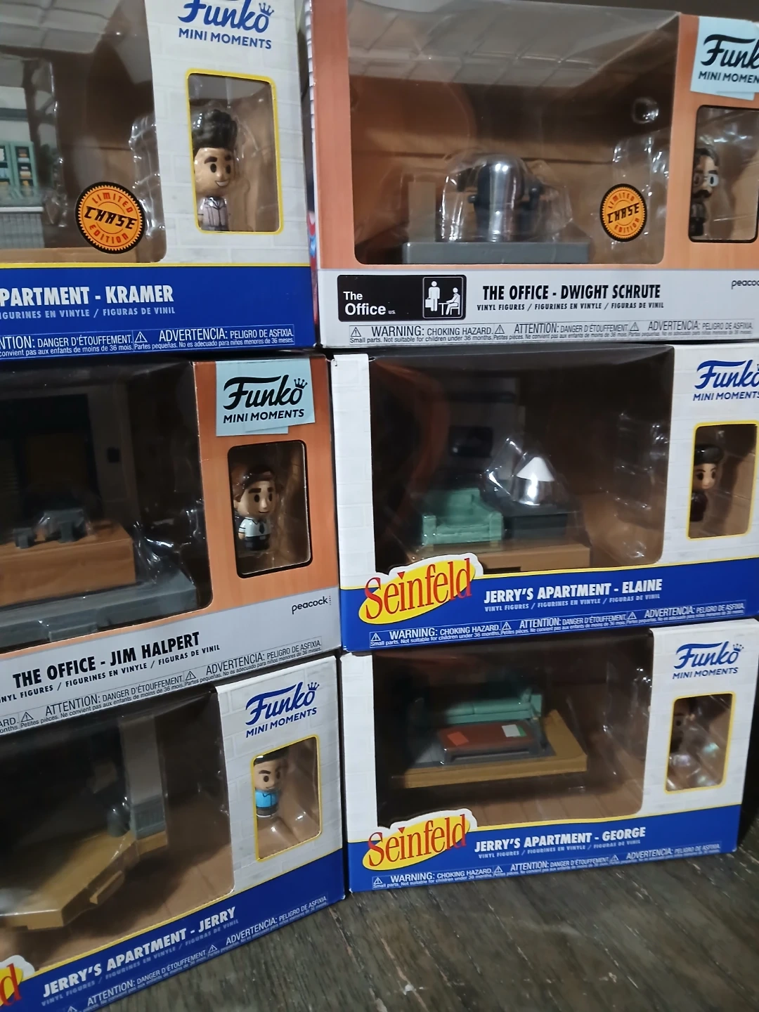 Collectible vinyl figures from Funko Mini Moments featuring characters from Seinfeld and The Office. Includes Jerry's Apartment sets and Dunder Mifflin office scenes. Perfect for fans of these classic TV shows!