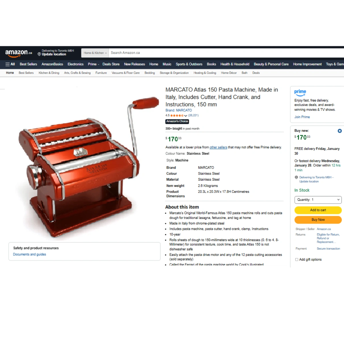 RETAIL PRICE $192 INC TAX-SEALED AUTHENTIC BRAND NEW UNOPENED Marcato Atlas150 pasta machine
