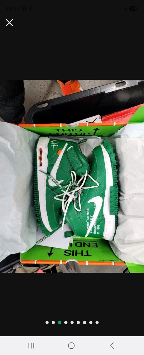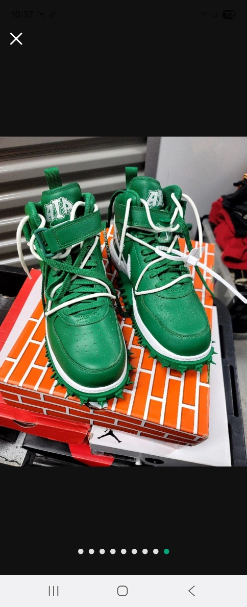 Green and white sneakers. Includes the original box with white laces. These shoes would be a lovely addition to your collection.