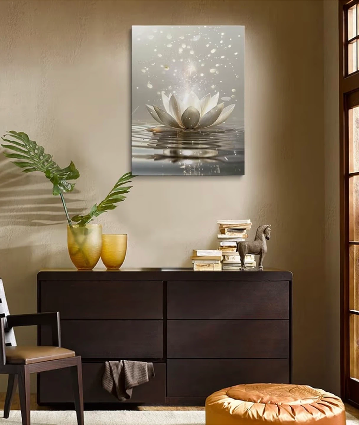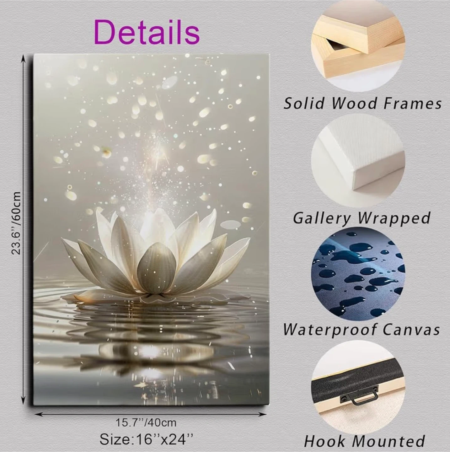 Here's a beautiful lotus flower canvas wall art piece! It measures 16"x24" and features: