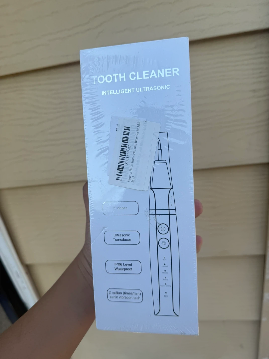 Ultrasonic Electric Tooth Cleaner. It's IPX6 level waterproof and uses 2 million times/min sonic vibration tech. Comes with 5 modes and an ultrasonic transducer. Suitable for adult use.