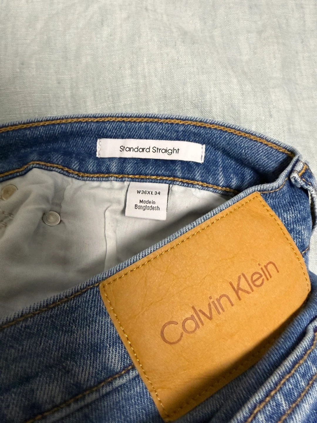 Calvin Klein Standard Straight jeans in a size W36xL34. Made in Bangladesh. Classic blue denim style.
