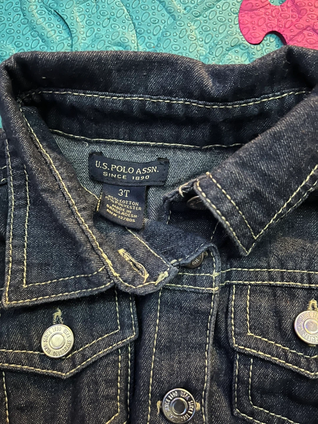 This U.S. Polo Assn. denim vest is size 3T. It's made with 100% cotton. Features two chest pockets and button closures.