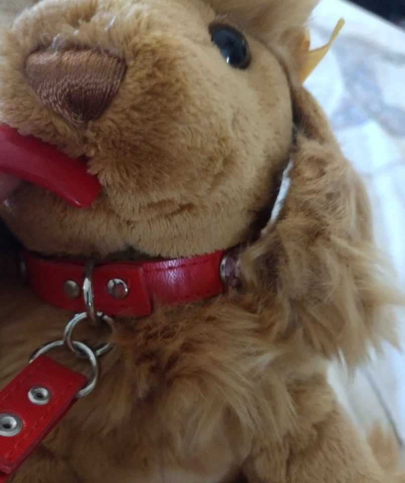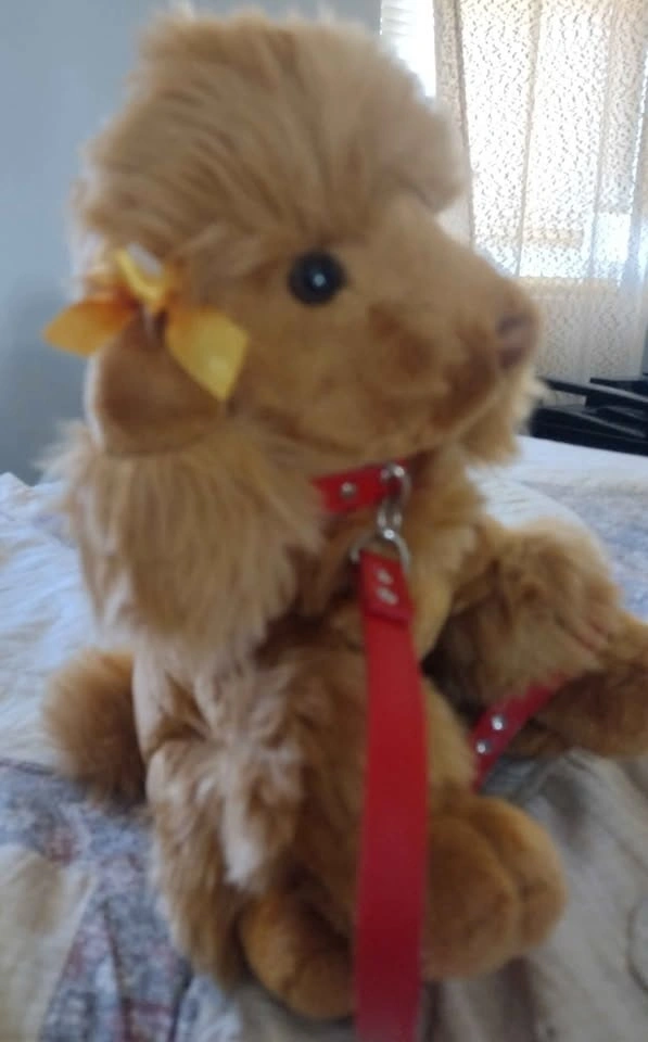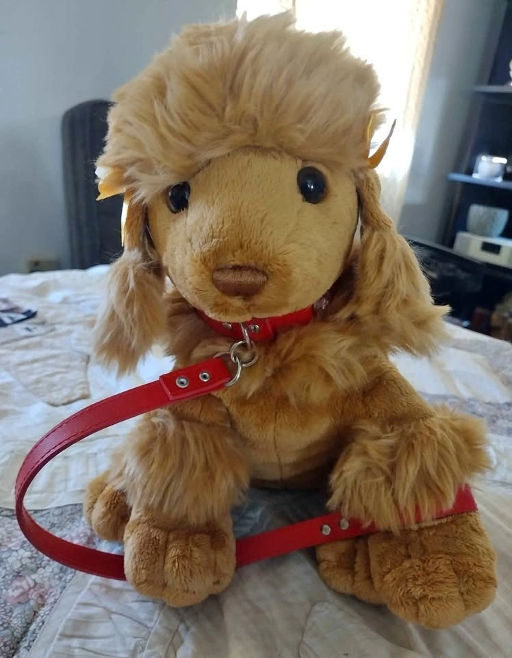 Adorable Poddle plush dog with leash
