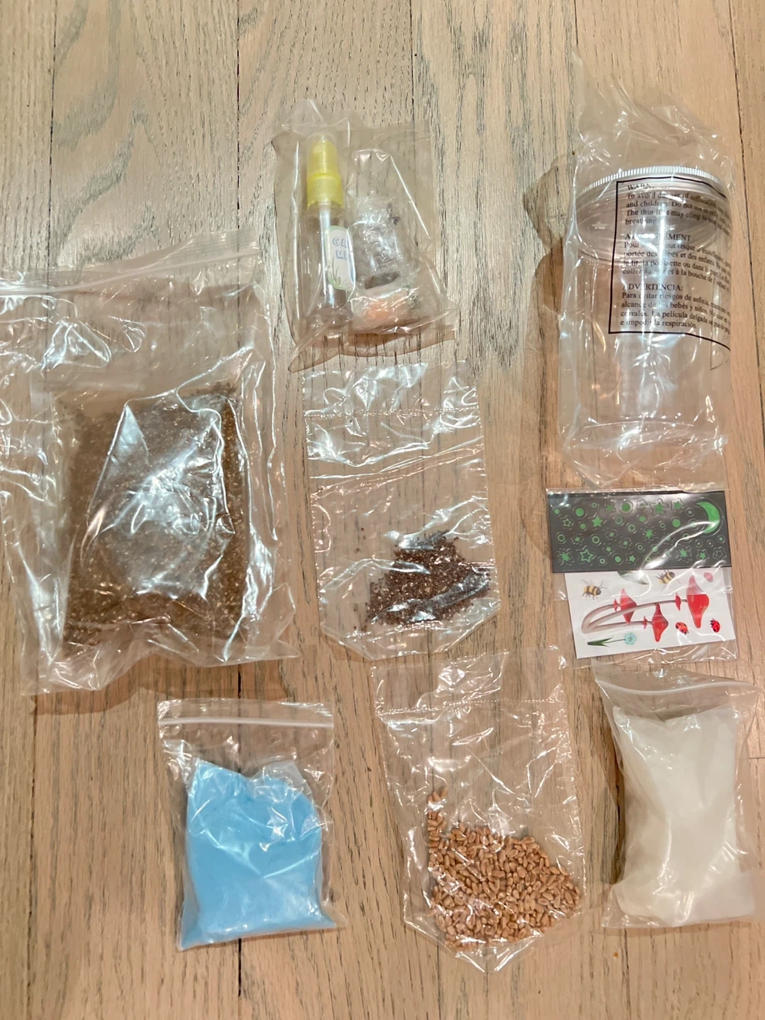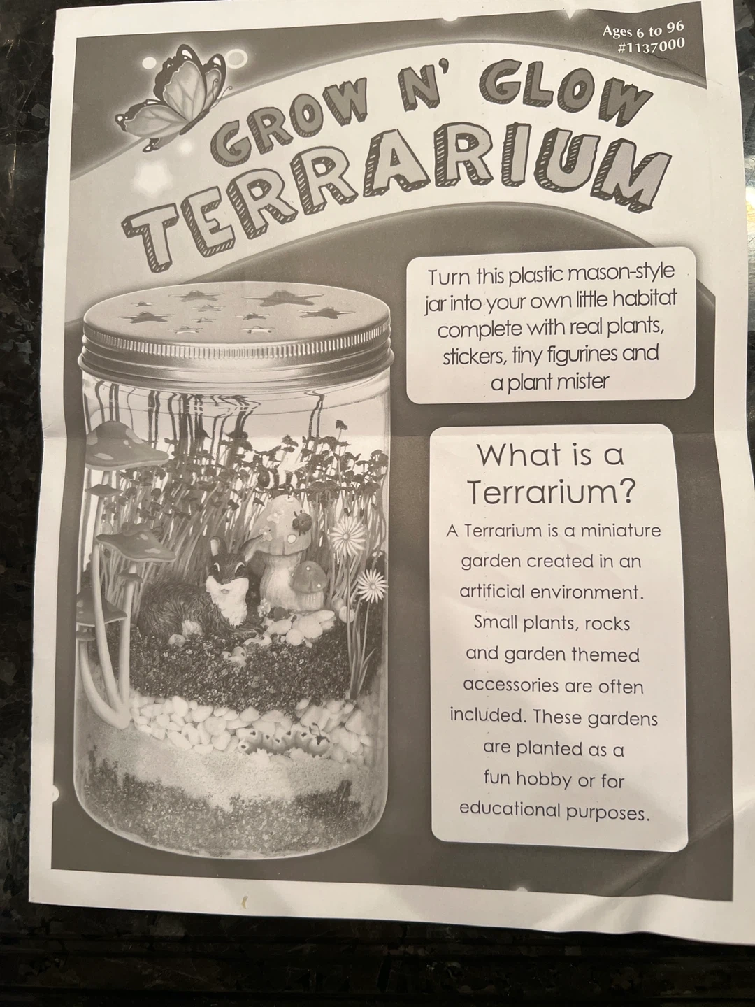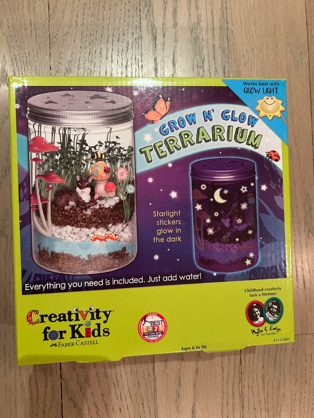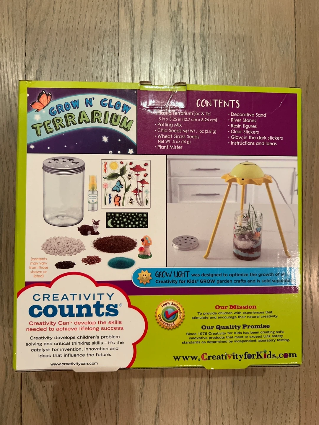 Get ready to create your own little world with the Creativity for Kids Grow N' Glow Terrarium! This kit has everything you need to get started, including decorative sand, river stones, resin figures, chia seeds, wheat grass seeds, and glow-in-the-dark stickers. It also comes with a plant mister and instructions to guide you along the way! Perfect for ages 6 to 96 all new just opened box. Or best offer