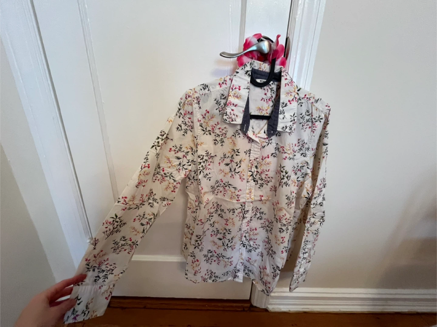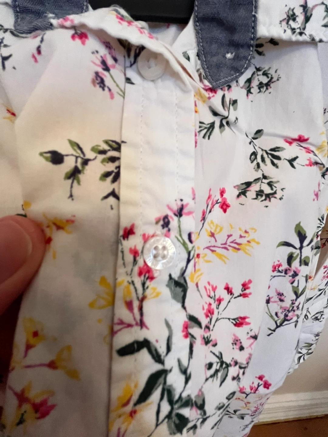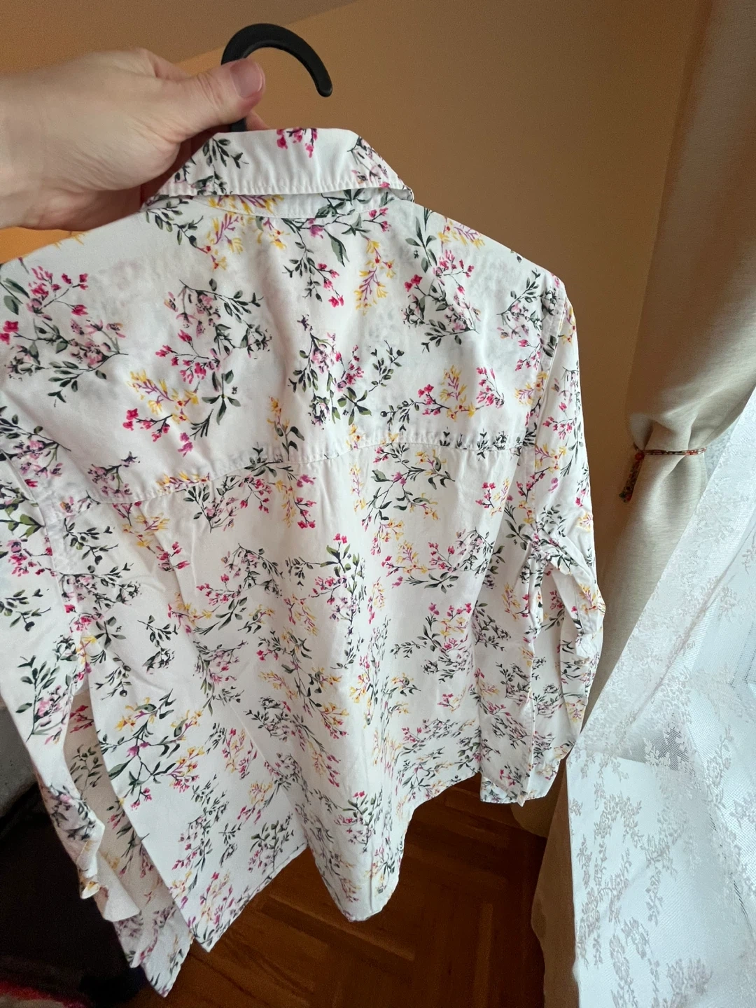 Selling a cute Mustang blouse with a floral print! It's a size 38 and made of 100% Baumwolle/Cotton/Coton/Algodon.