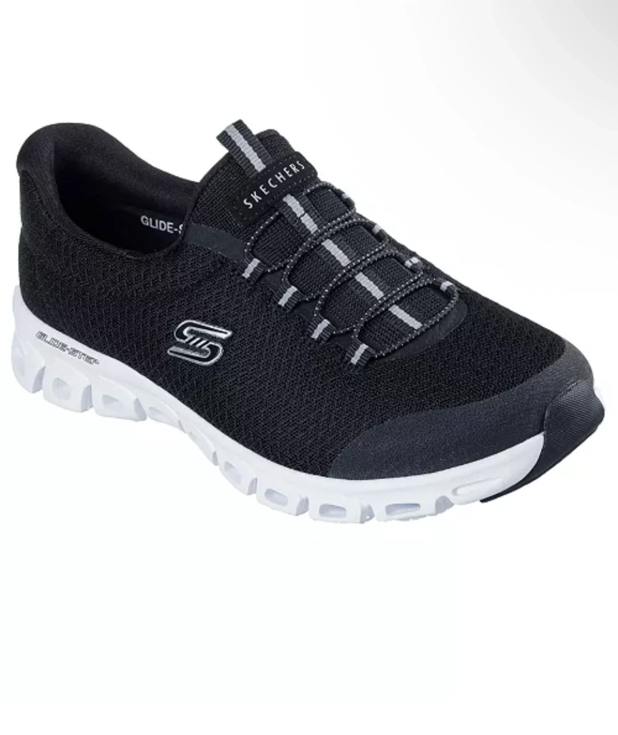 Selling a pair of Skechers Glide-Step women's walking shoes in black and white. These shoes feature Air-Cooled Memory Foam for extra comfort. They are lightweight and perfect for everyday wear! No box.