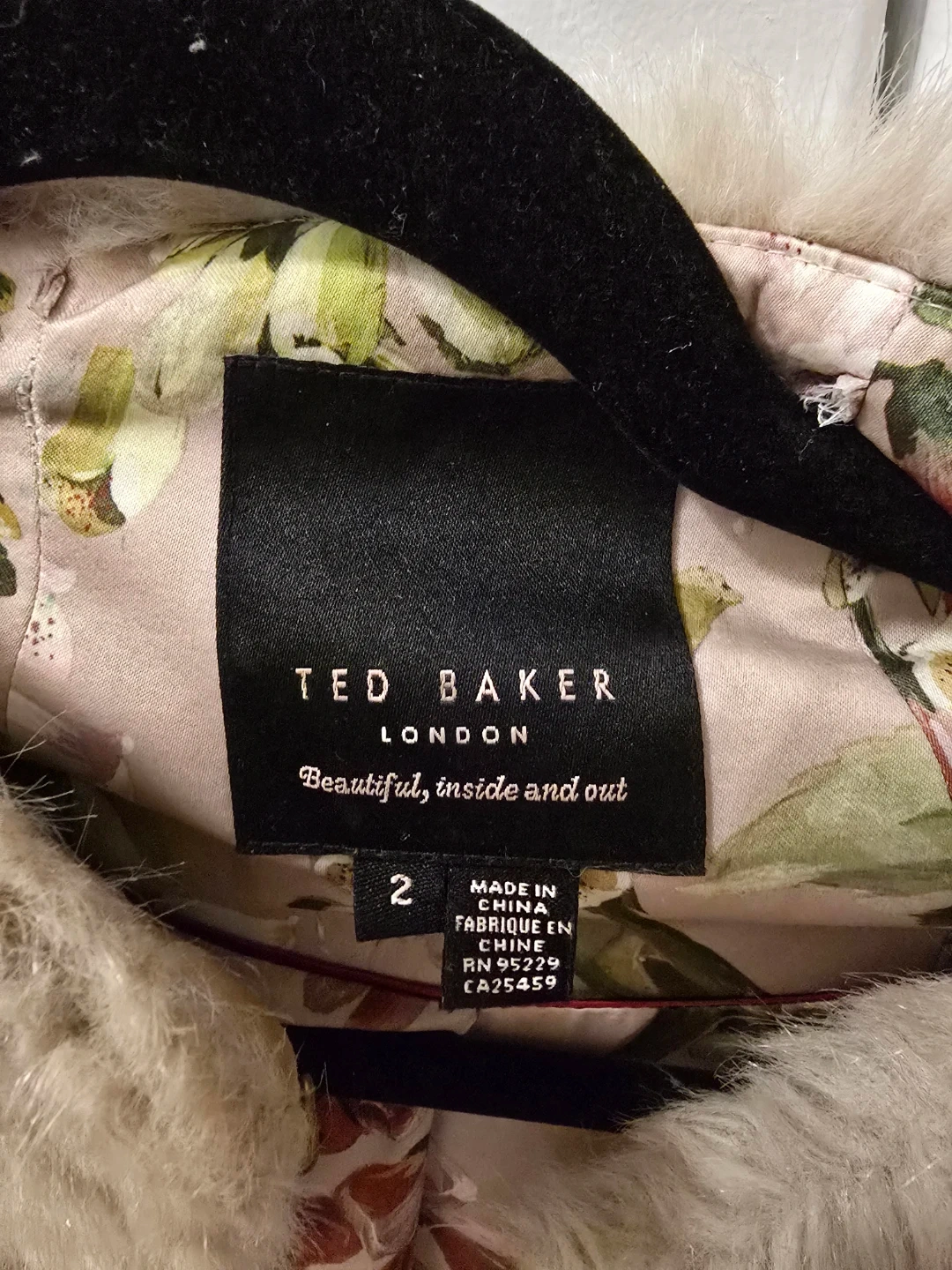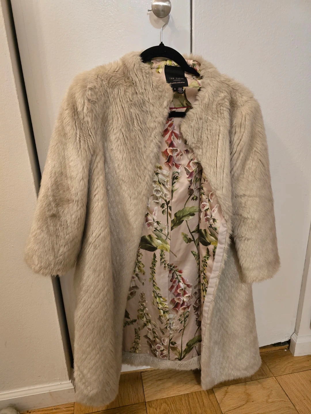 Faux fur coat from Ted Baker London. Features a beautiful floral print lining. Only wore 2x 😅