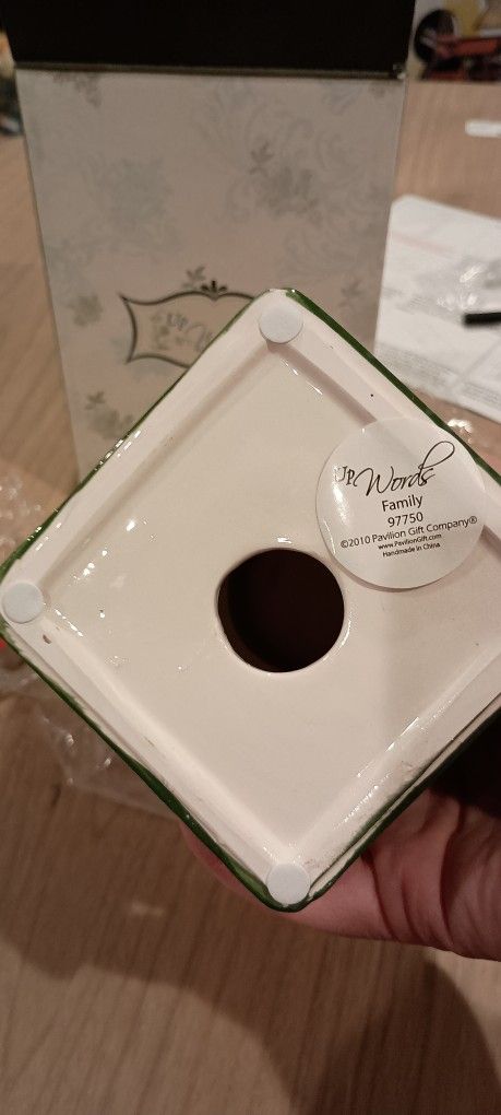 Saying, "family is the heart of christmas…family brings us joy and happiness". Comes packaged in a beautiful gift box, making for a wonderful "gift to go". Material: Ceramic. Color: Multicolor. Size: Small.