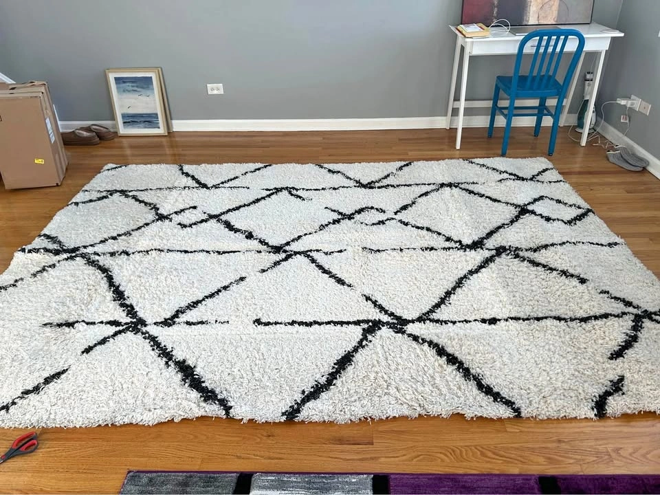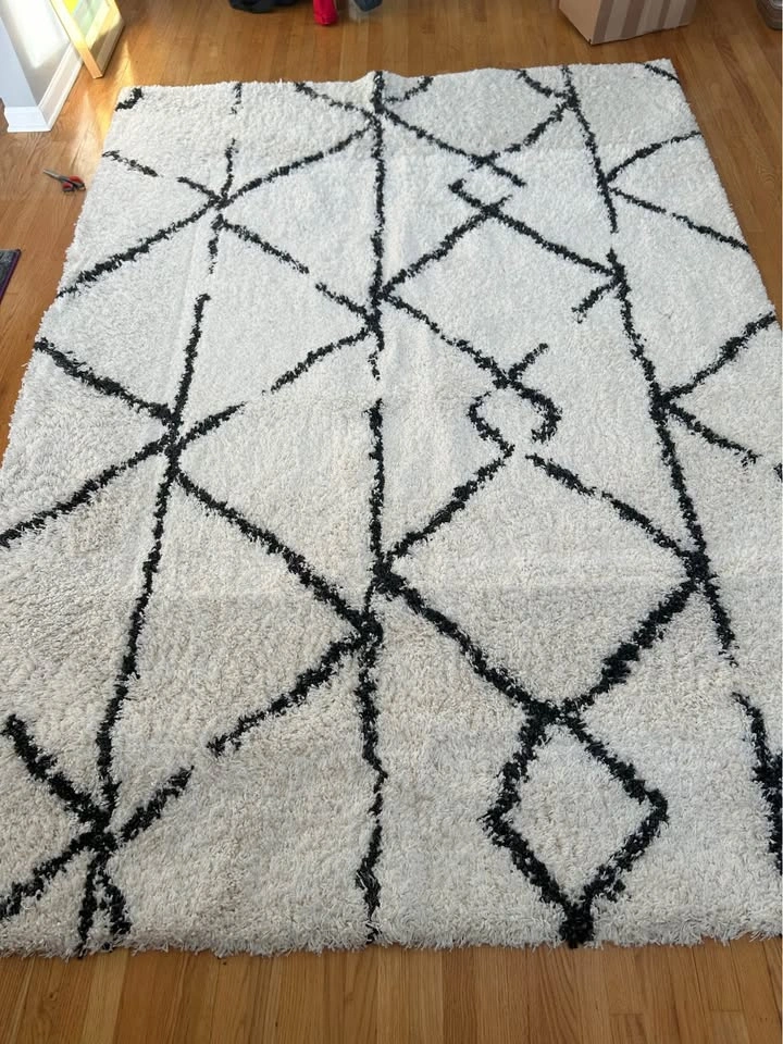 65Soft and comfortable area rug, perfect for bedroom or living room. Cream/gray color design. Threshold brand from Target. Also have an accompanying smaller one that you can purchase along with it (2’6” x 4’2” - same brand and design)
