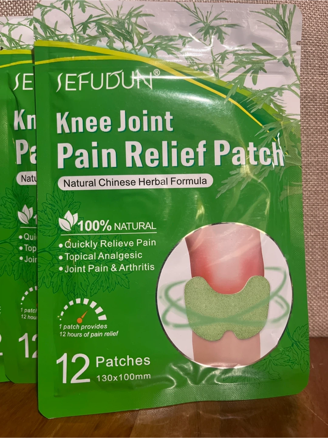 This listing is for SEFUDUN Knee Joint Pain Relief Patches. It's a natural Chinese herbal formula for pain relief. Each patch provides 12 hours of pain relief. Patches are 130x100mm. 12 patches per pack. 48 total.