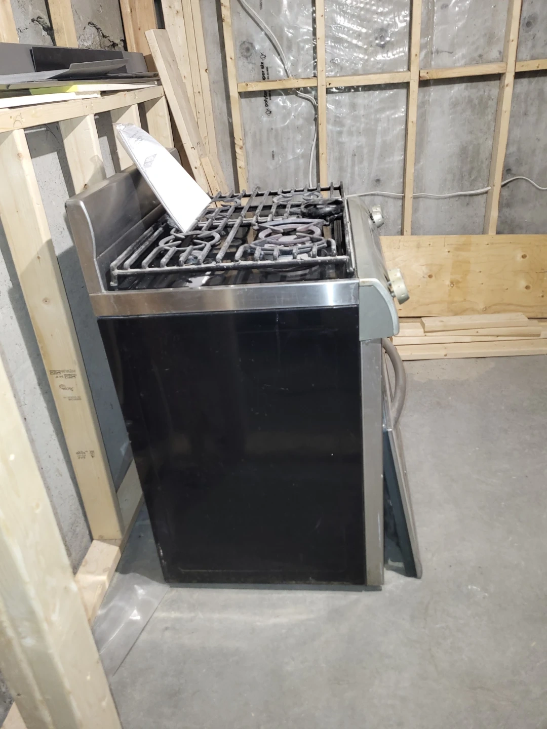This is a stainless steel gas range with a four-burner stovetop and an oven. It features a digital display and electronic controls. Comes with the user manual.