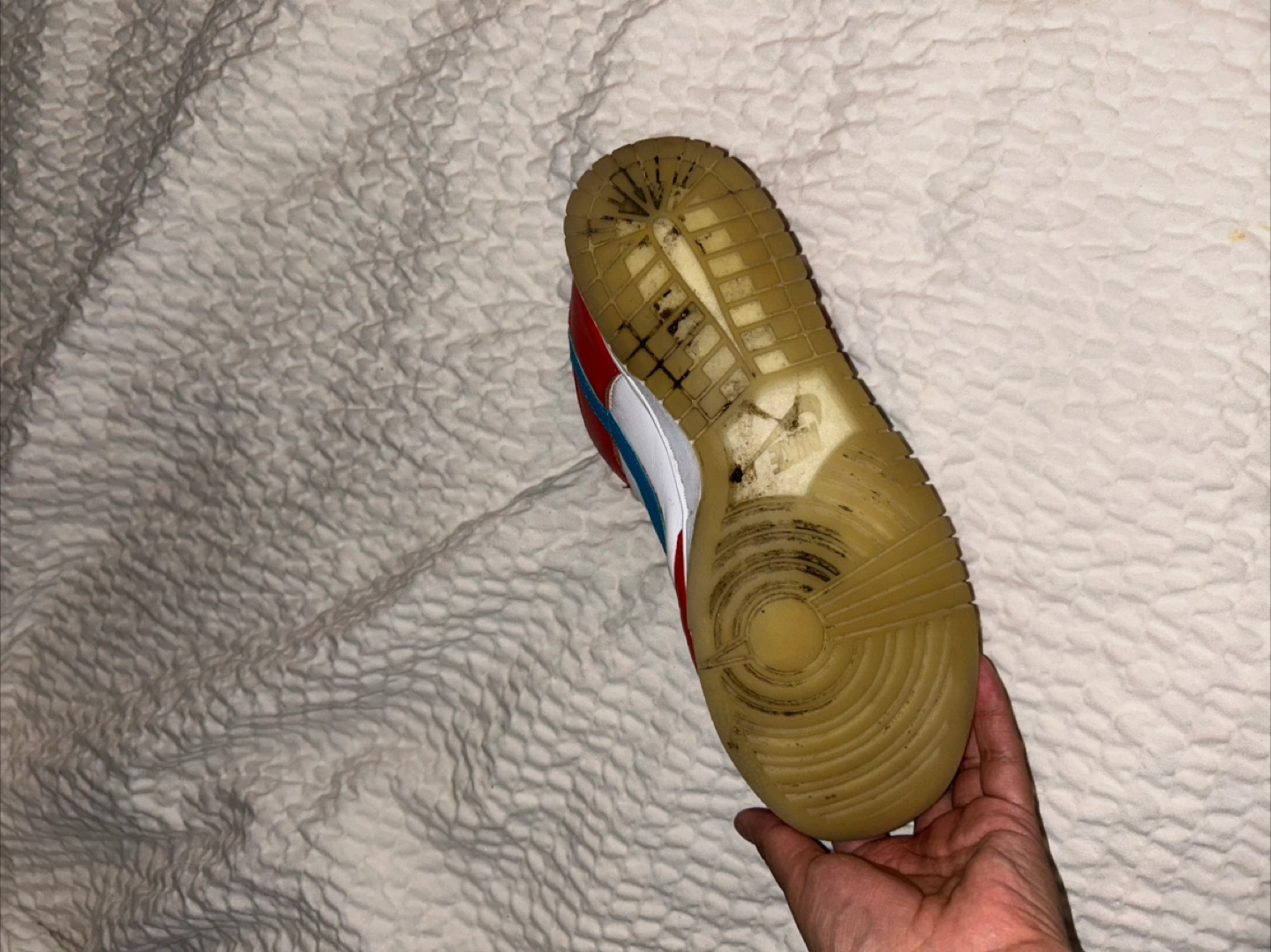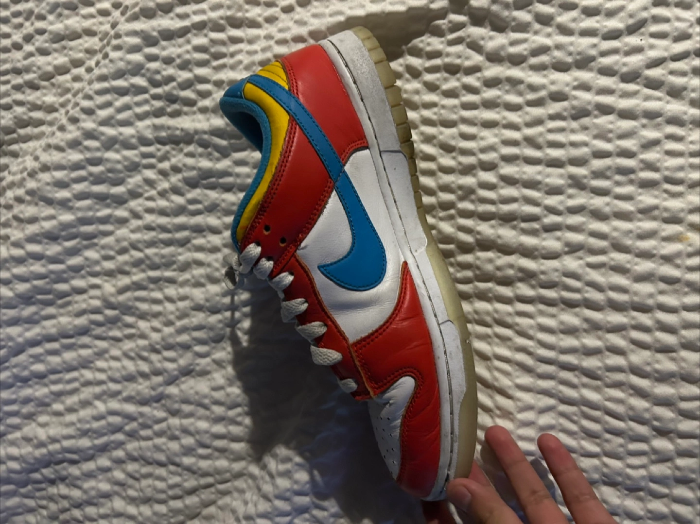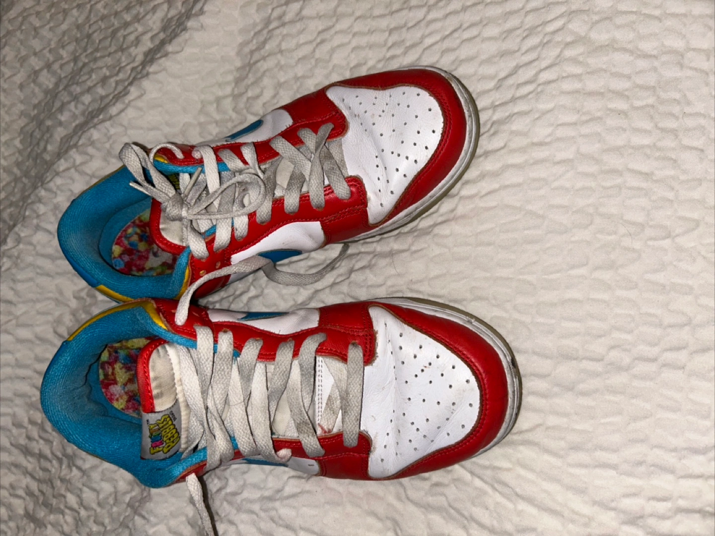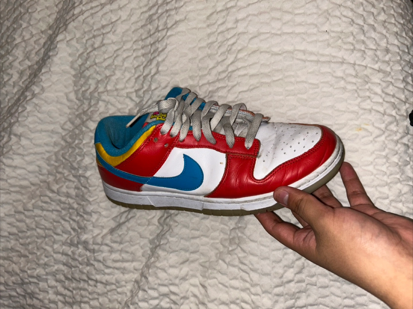 Selling a pair of Nike Dunk Low Free 99 sneakers. They show some signs of wear, as you can see in the pictures, but still have plenty of life left. The vibrant colorway includes white, red, blue, and yellow accents, making them a standout addition to any sneaker collection