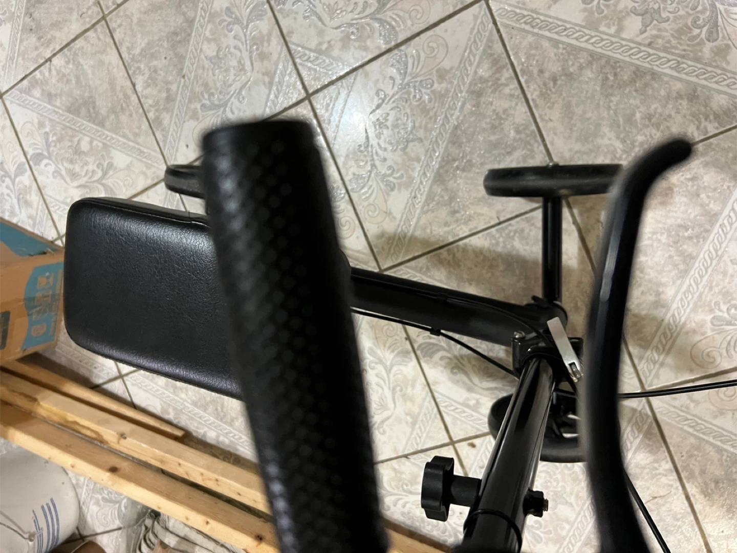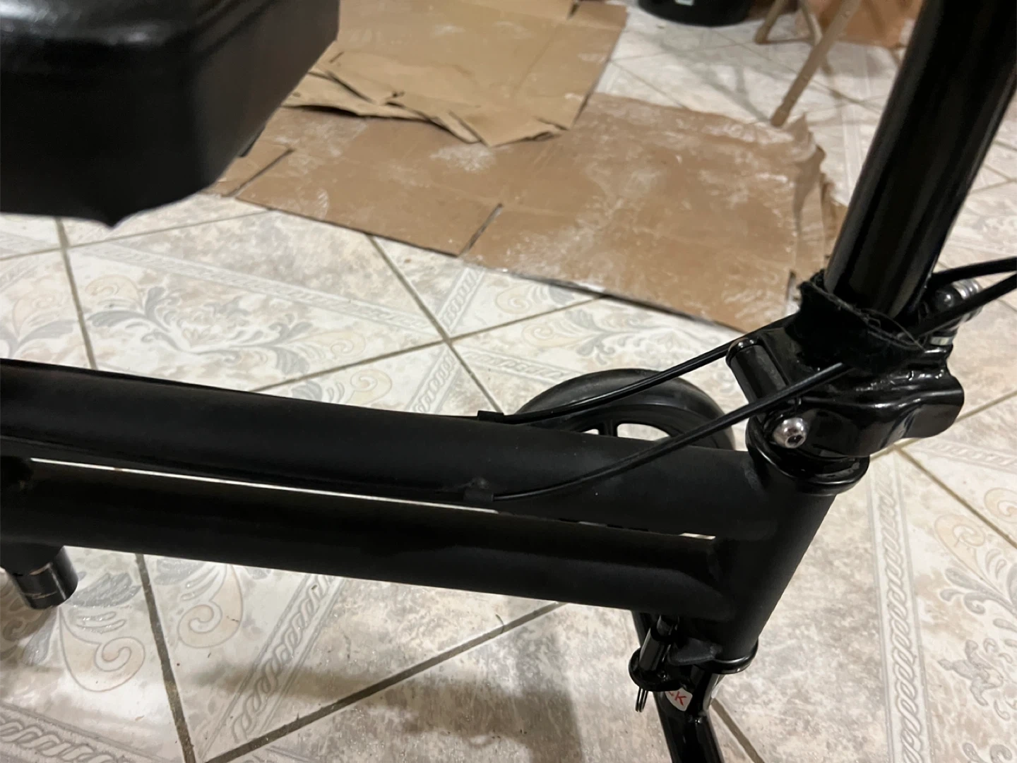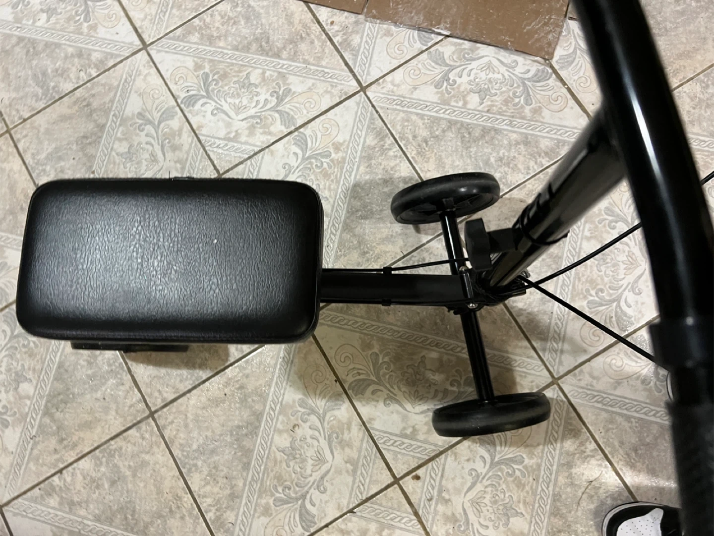 Selling a knee walker scooter in black. It has a comfortable seat and is easy to maneuver around the house. Great for getting around while recovering from a foot or ankle injury!