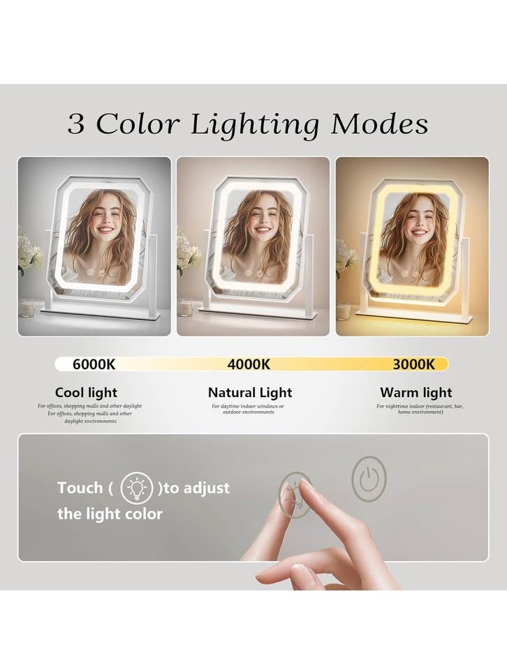 Lighted Makeup Mirror, 3 Colors for Precise Application