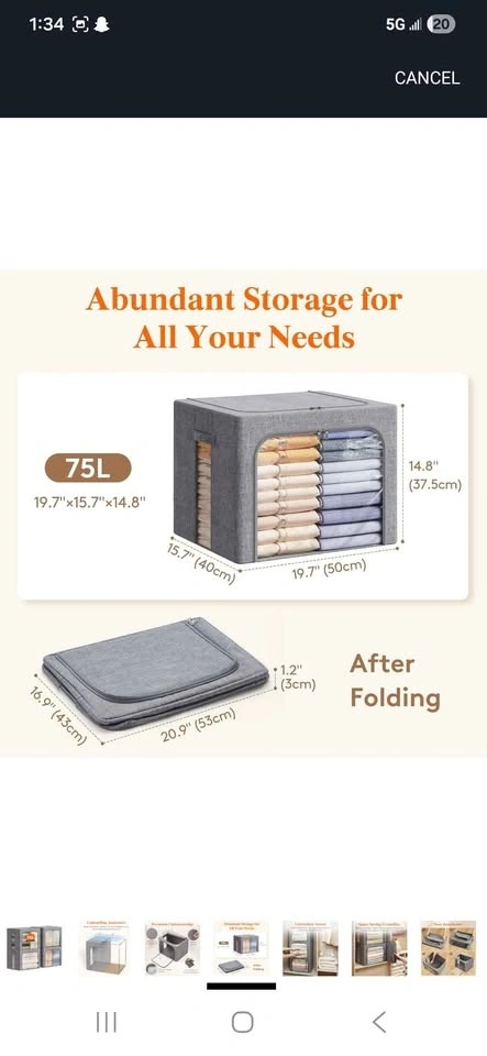 Brand New Lifewit Clothes Storage Bins with Metal Frame, Stackable Storage Box, Foldable Clothing Storage Bins with Lids, 75L Storage Bags Fabric Box Organizer with Clear Window& Zippers& Sturdy Handles 4 Pack.