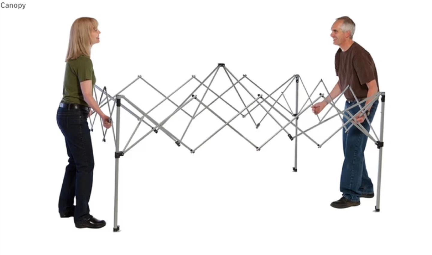The canvas top part has never been used - brand new. The structure is VERY easy to set up by one woman alone - it’s been lightly used, only indoors, for hanging princess fabric over a huge bedroom area for semi-privacy.