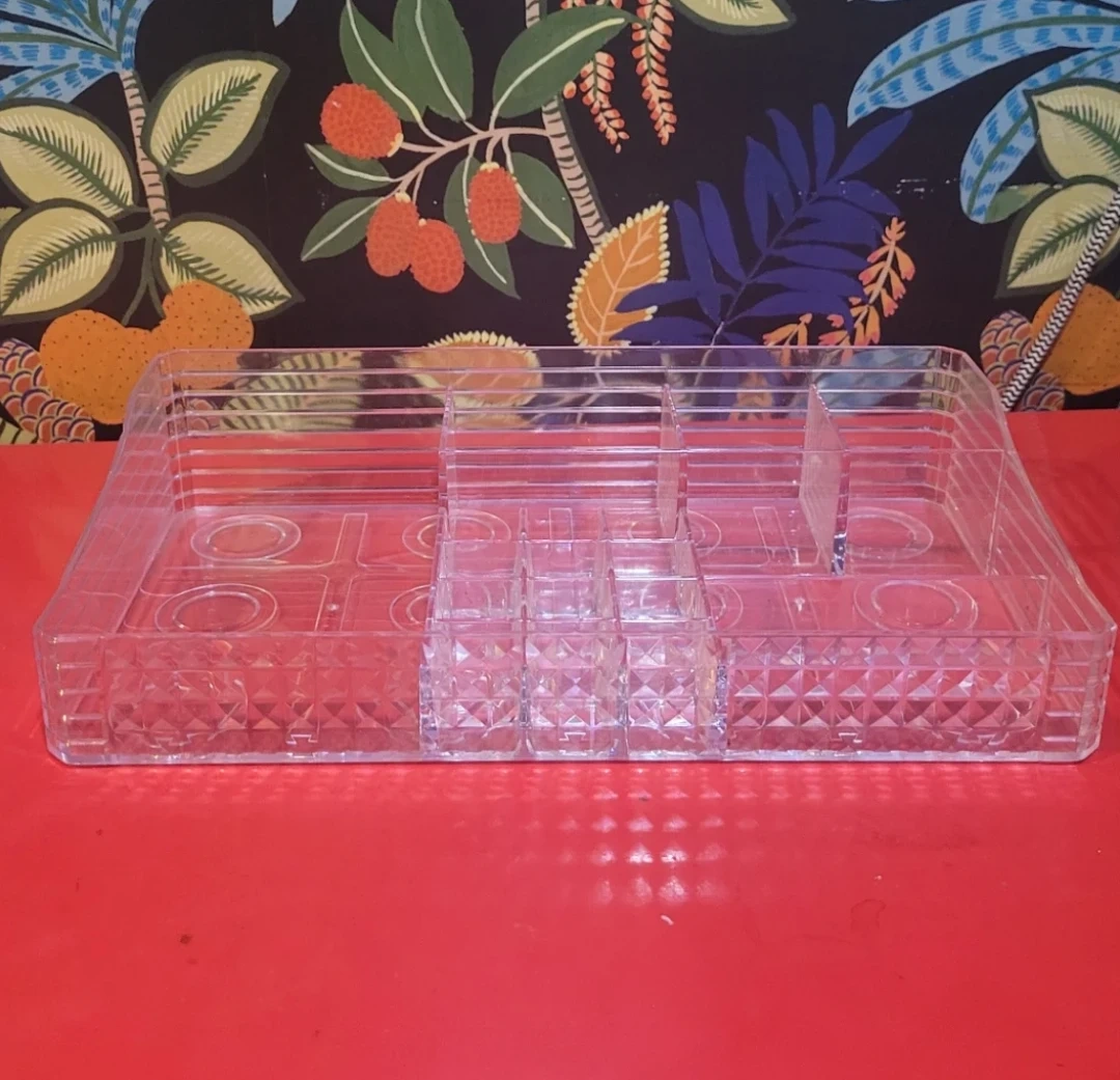 Selling a clear acrylic organizer! It's perfect for organizing makeup, skincare, or other small items. It has multiple compartments to keep everything neat and tidy