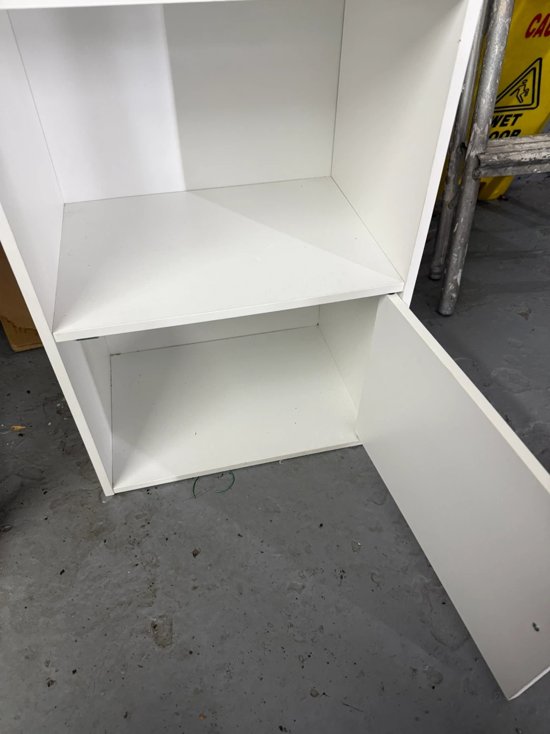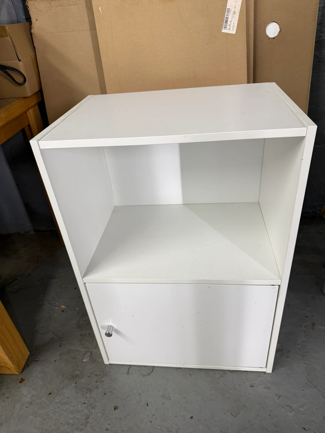 Selling a white storage cabinet! It has a clean and simple design that would fit well in any room. Perfect for organizing your belongings or displaying your favorite items
