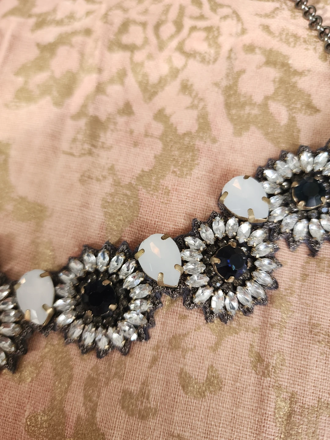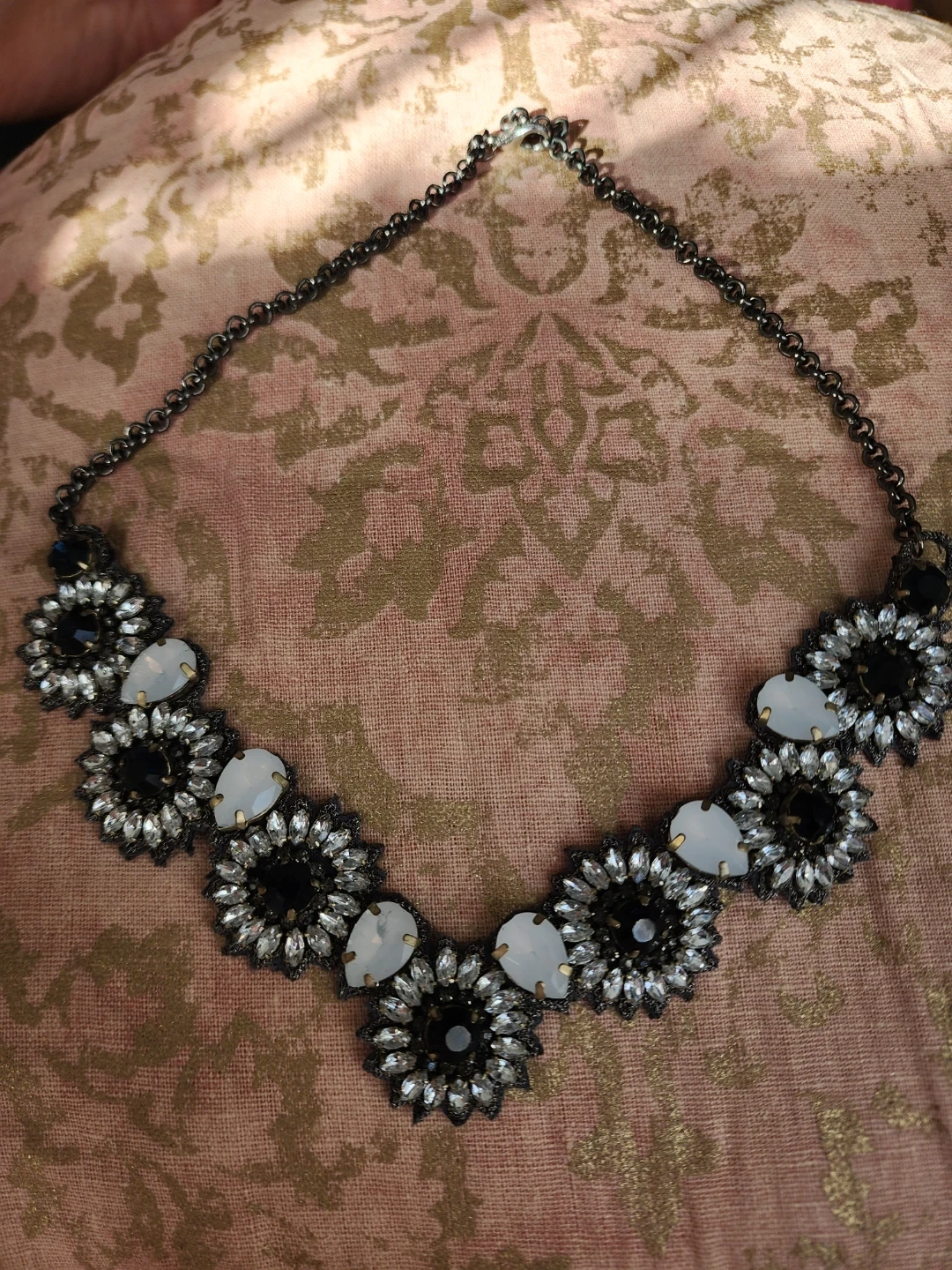 Selling a lovely statement necklace with black and white stones. It's in great condition and ready to add some sparkle to your outfit!