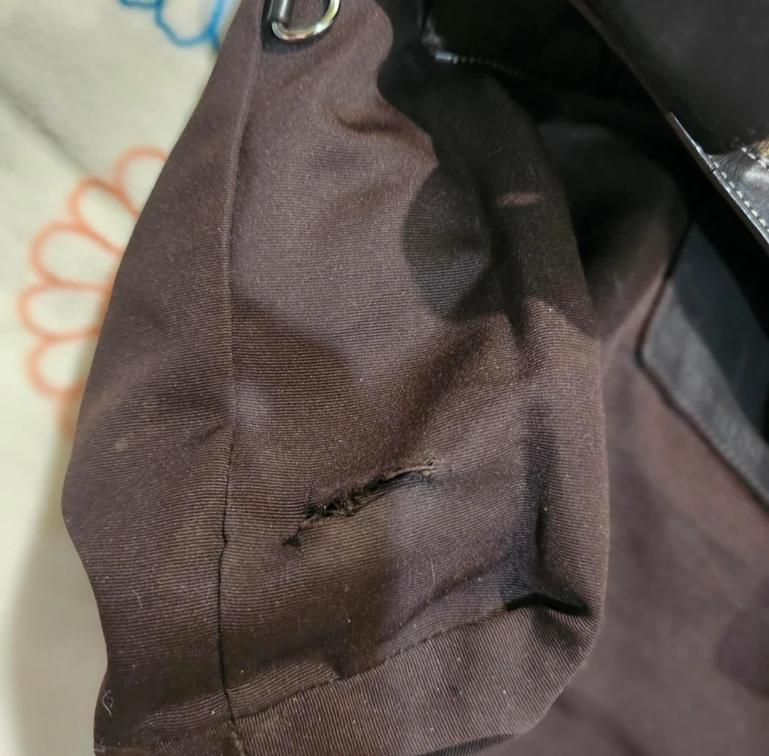 has a small cut in the inside interior but something that can be fix ! outside is still beautiful
