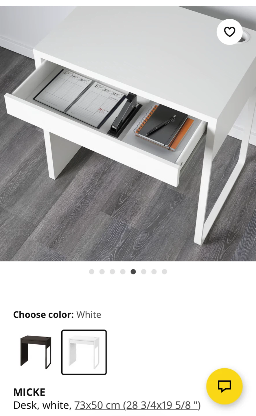 1 / 61 / 6Buy & SellIKEA 이케아 MICKE White DeskIKEA 이케아 MICKE White Desk$60Selling a white IKEA MICKE desk. ☑️Retails for $99+tax ☑️Perfect condition without any scratchesConditionLike newWHERE TO MEETCheck LocationView MapSELLERssohWillowdale E4017 reviews1 chats·1 favorites·32 viewsSEND CHAT TO SELLERHi ssoh! I’m interested in your listing.Hi ssoh! I’m interested in your listing.Get the Karrot app to chatSign In to chat