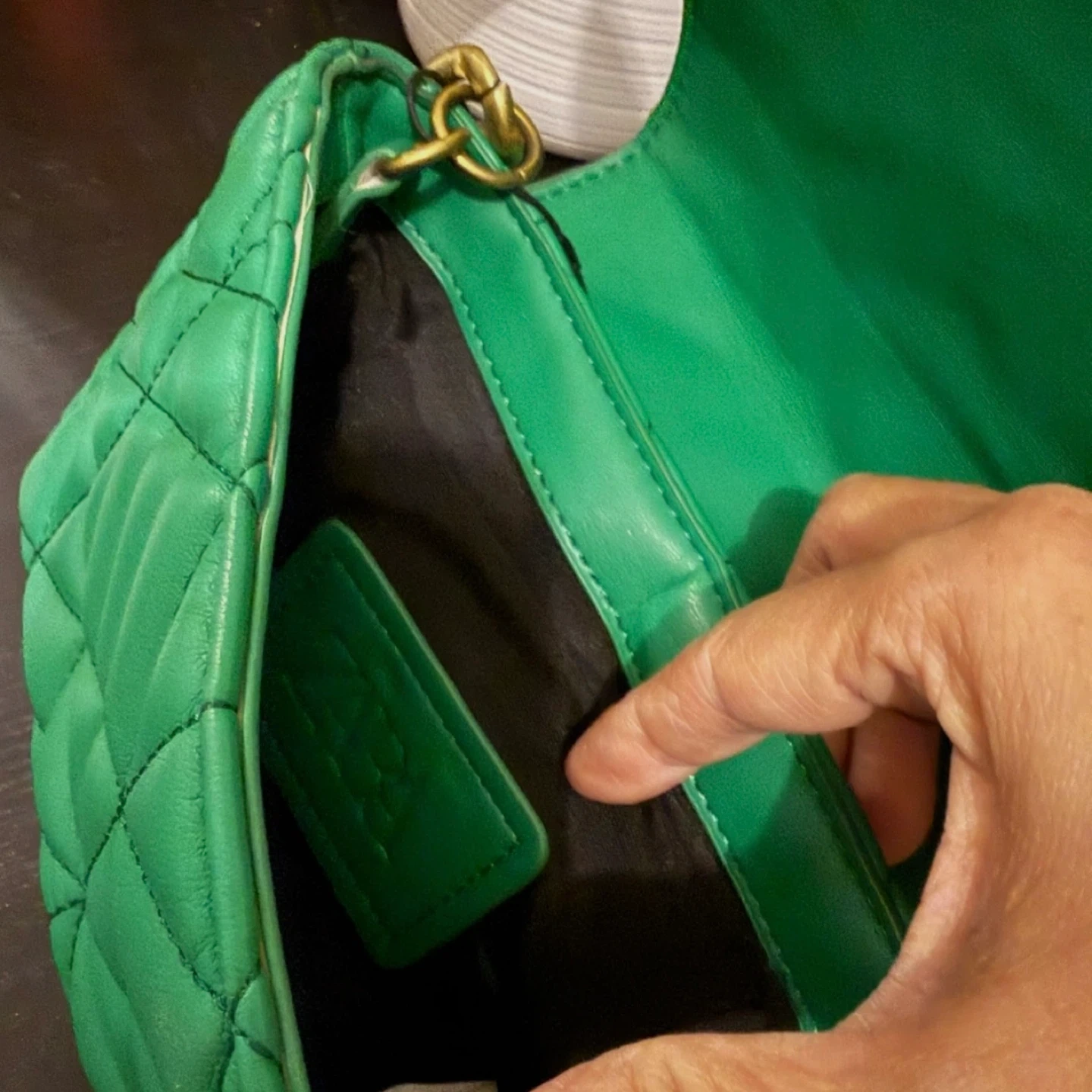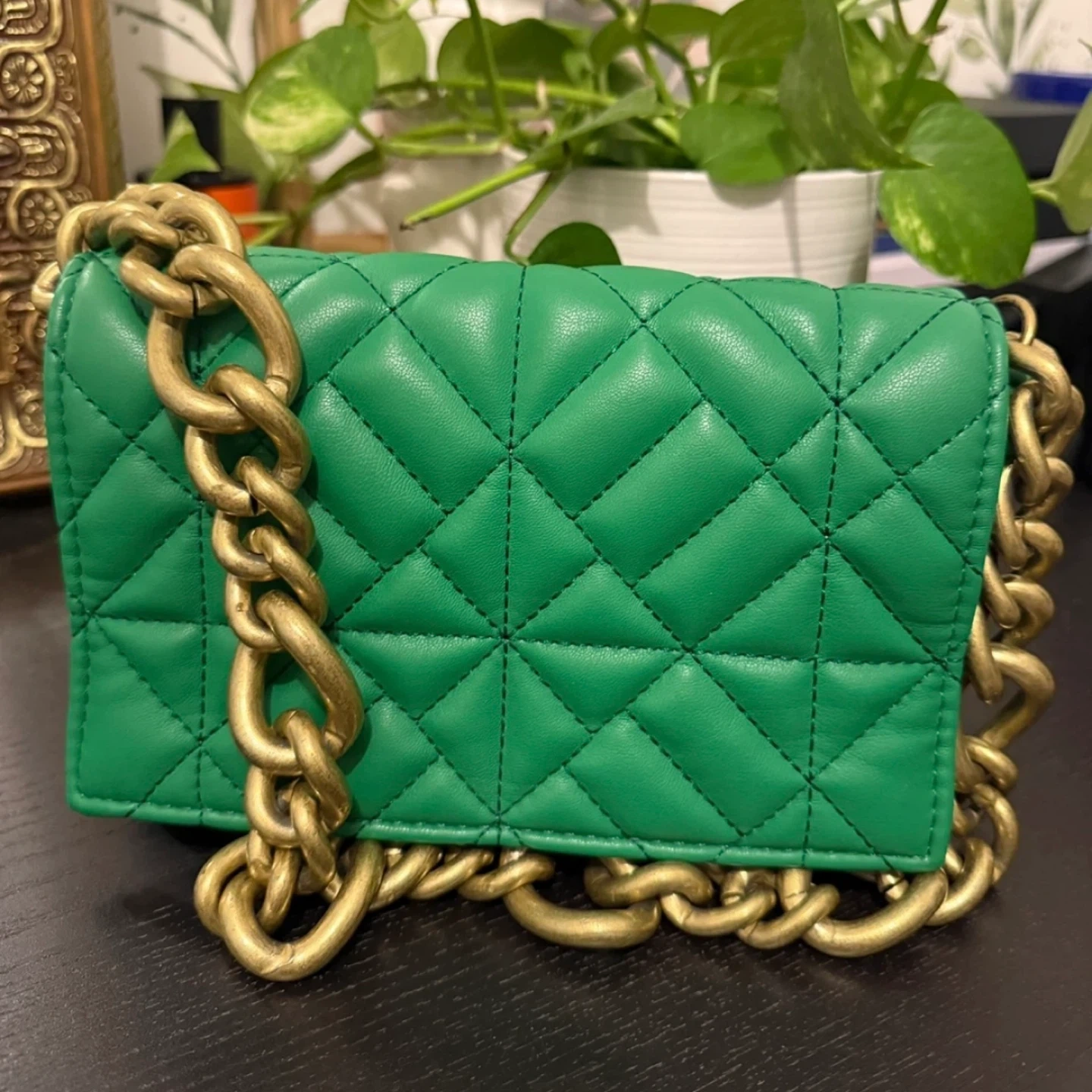 Selling a stylish green quilted shoulder bag from Zara! It features a chunky gold chain and a quilted design. Perfect for adding a pop of color to any outfit