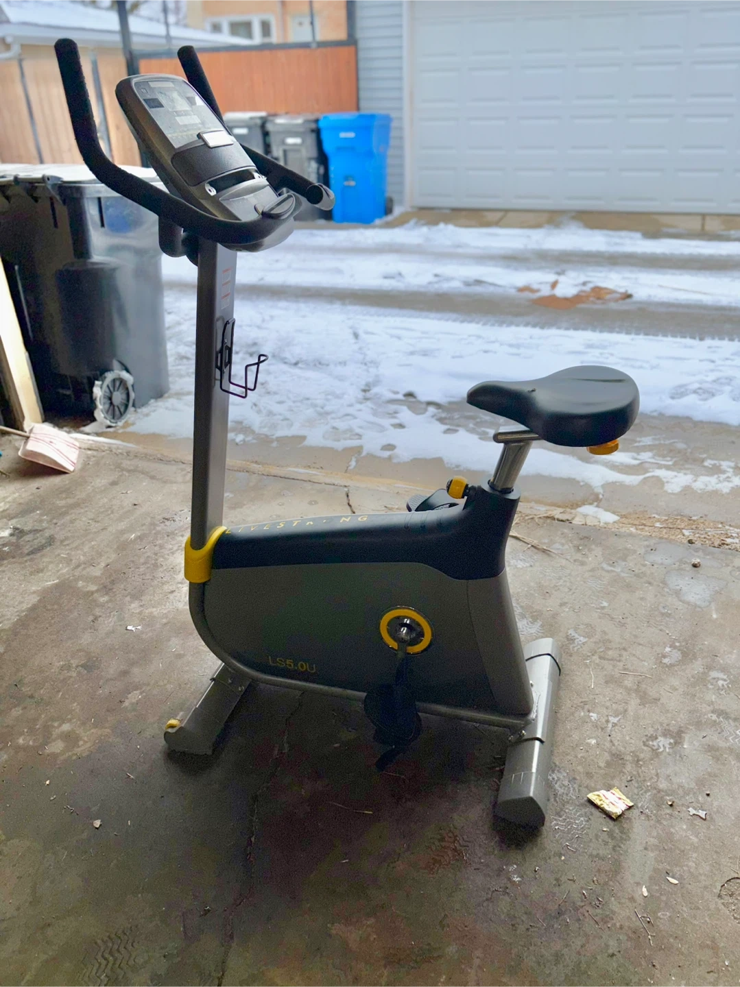 Selling a Livestrong LS5.0U exercise bike. It's in good condition and ready for a new home gym! Perfect for getting your cardio in during the cold months. Needs new electrical chord and has 2 small nicks in the seat.