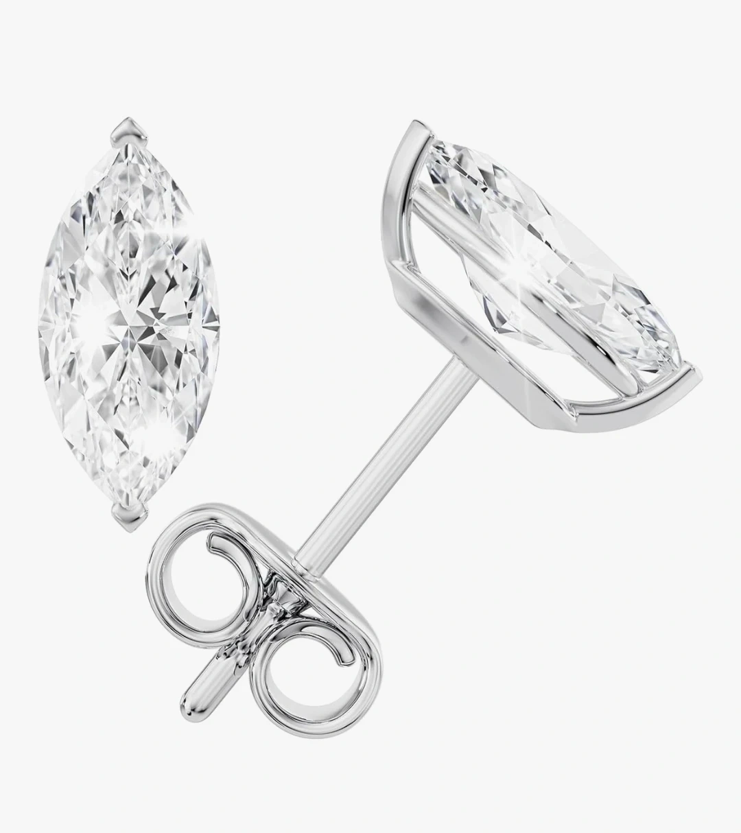 Estos son unos preciosos pendientes de moissanita con talla marquesa.