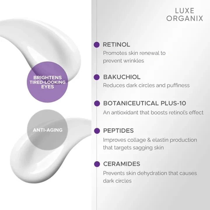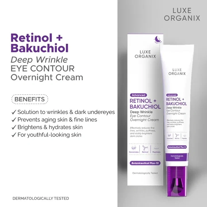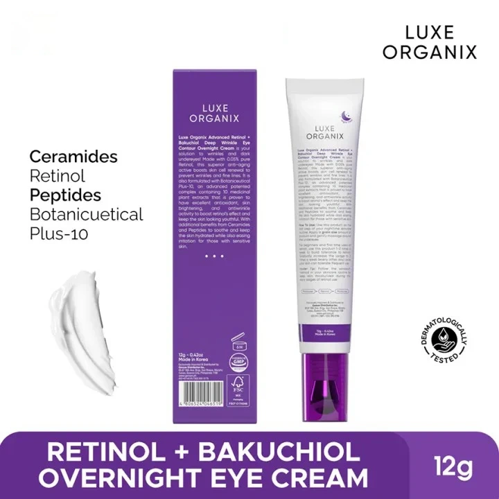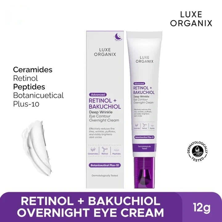 LUXE ORGANIX Advanced Retinol + Bakuchiol Deep Wrinkle Eye Contour Overnight Cream 12g+