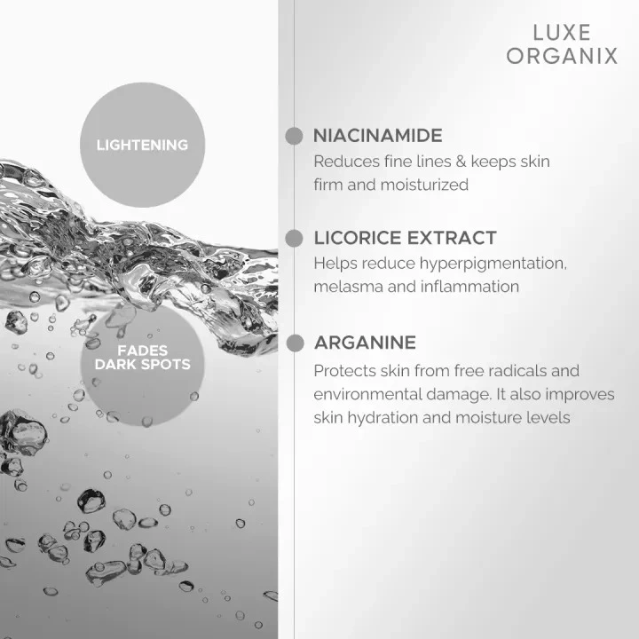 It enhances skin texture and smoothness while reducing hyper pigmentationcaused by sun damage giving skin a lighter and more even out skin tone.