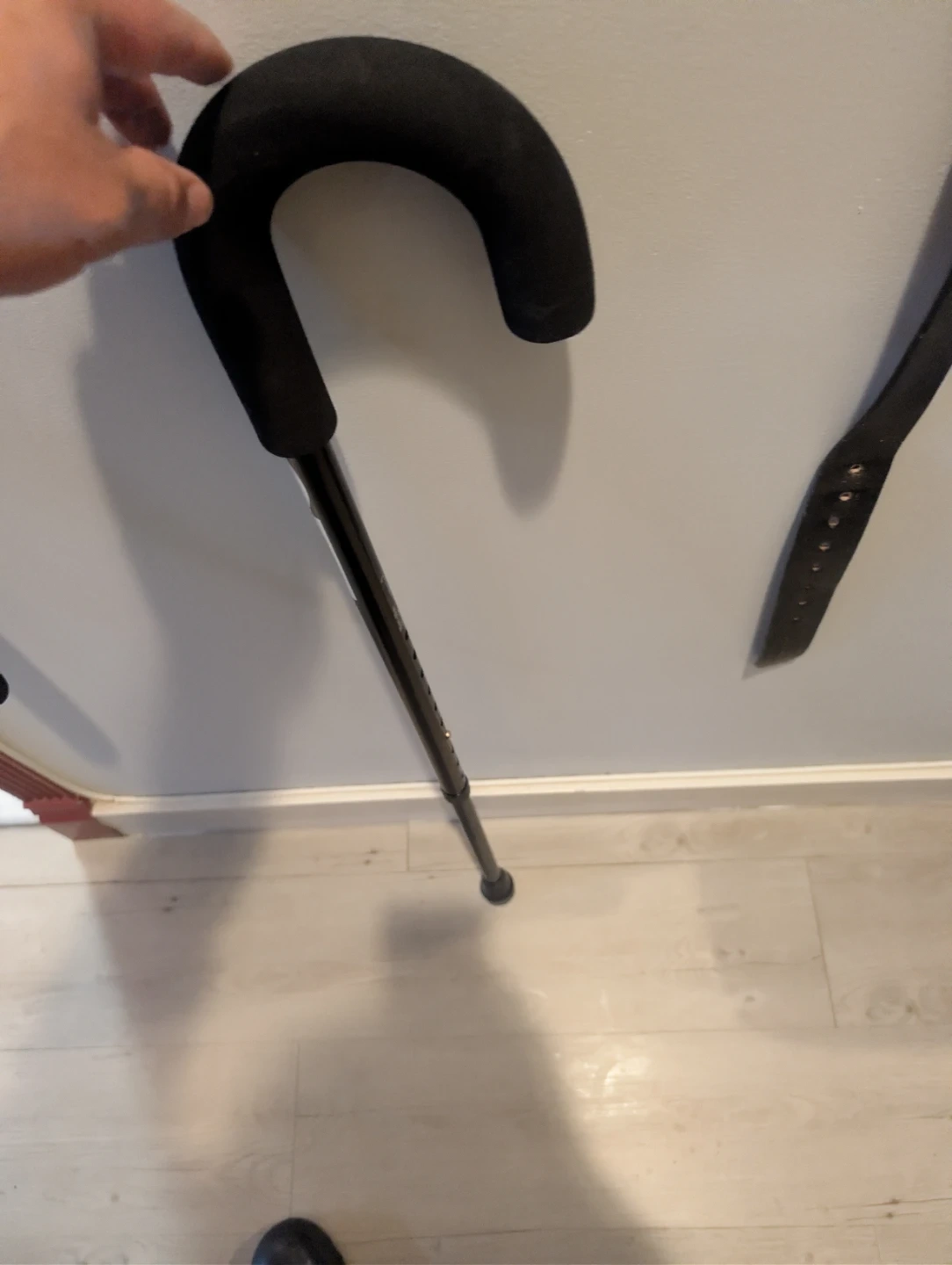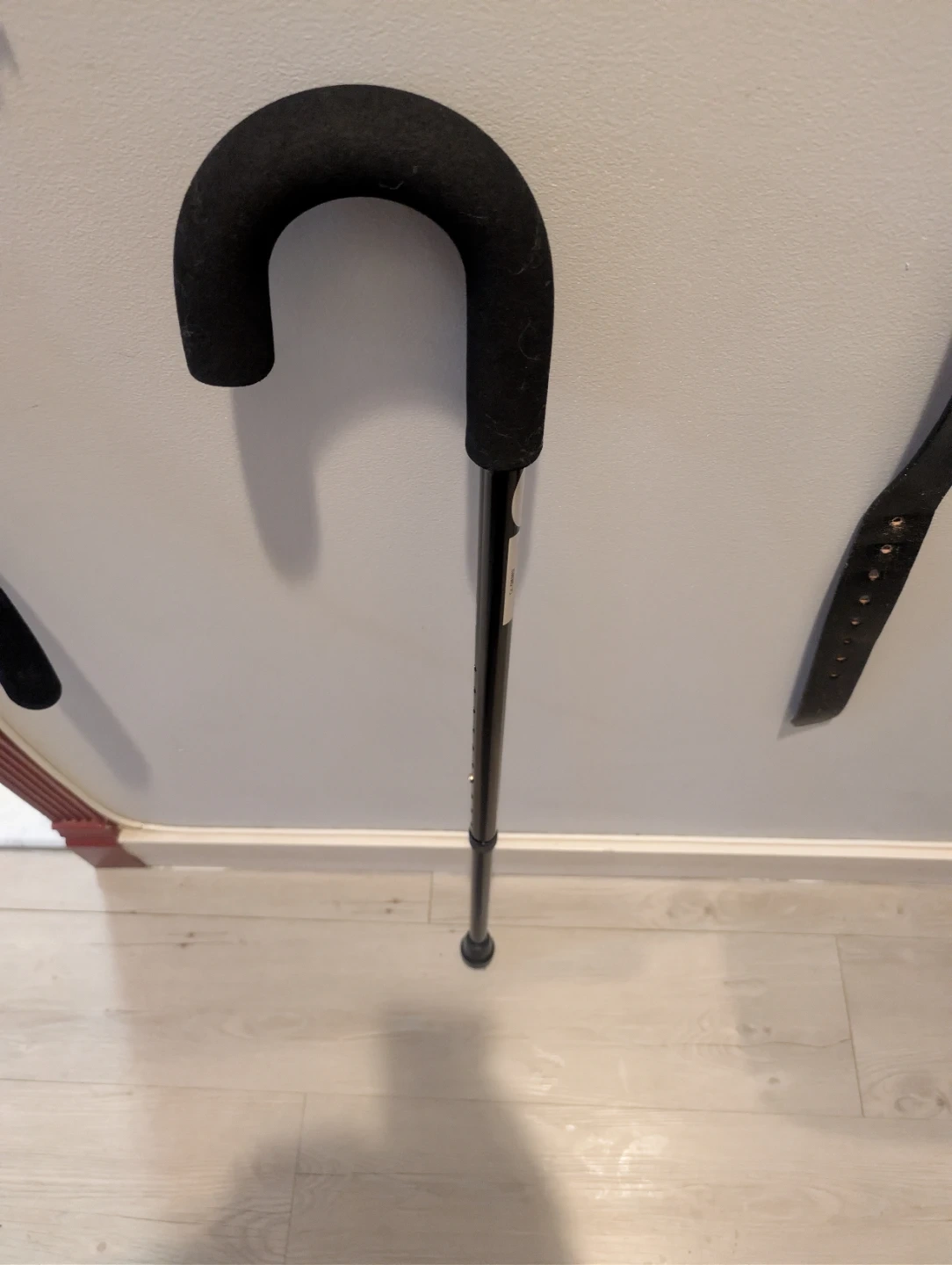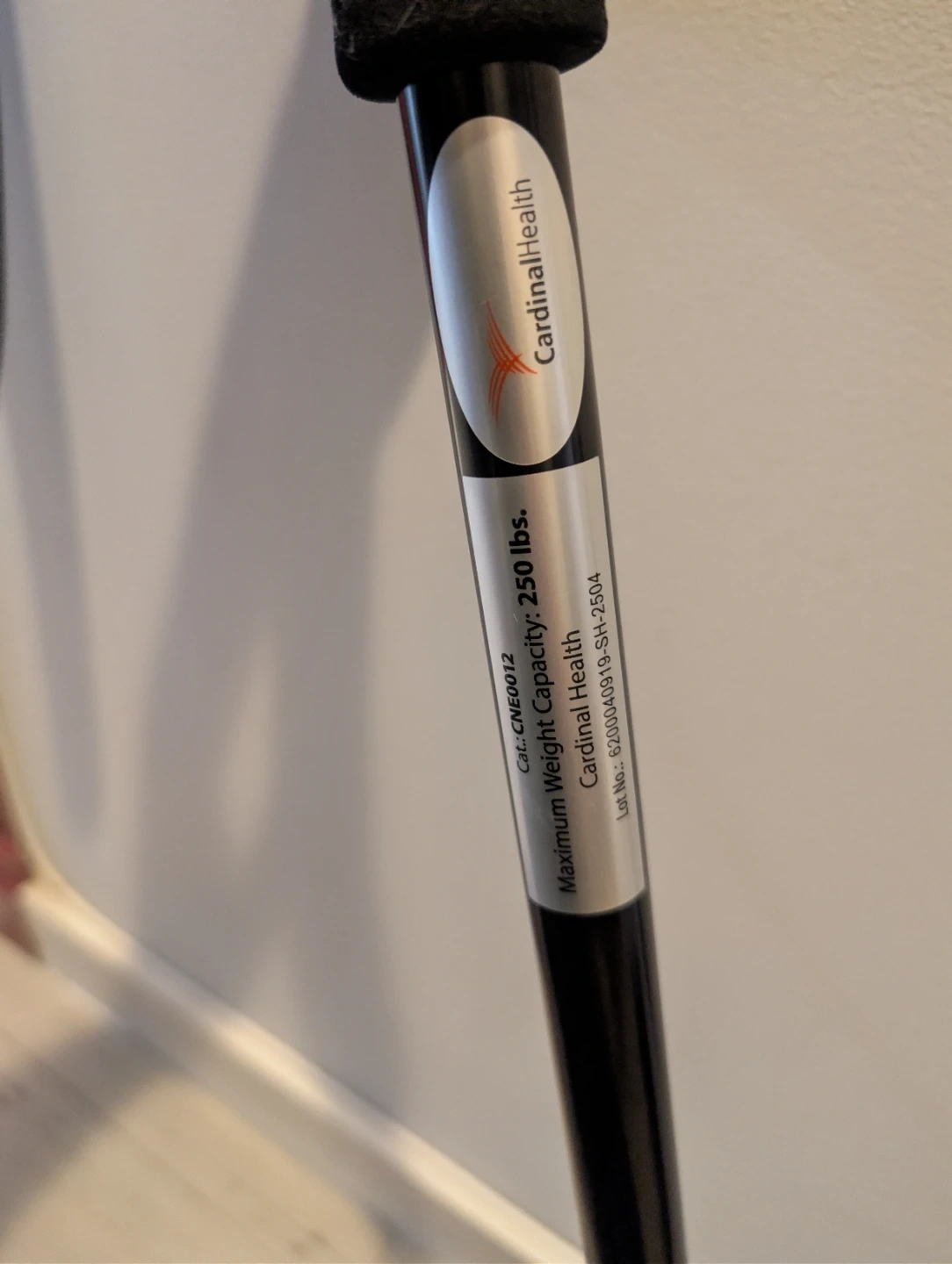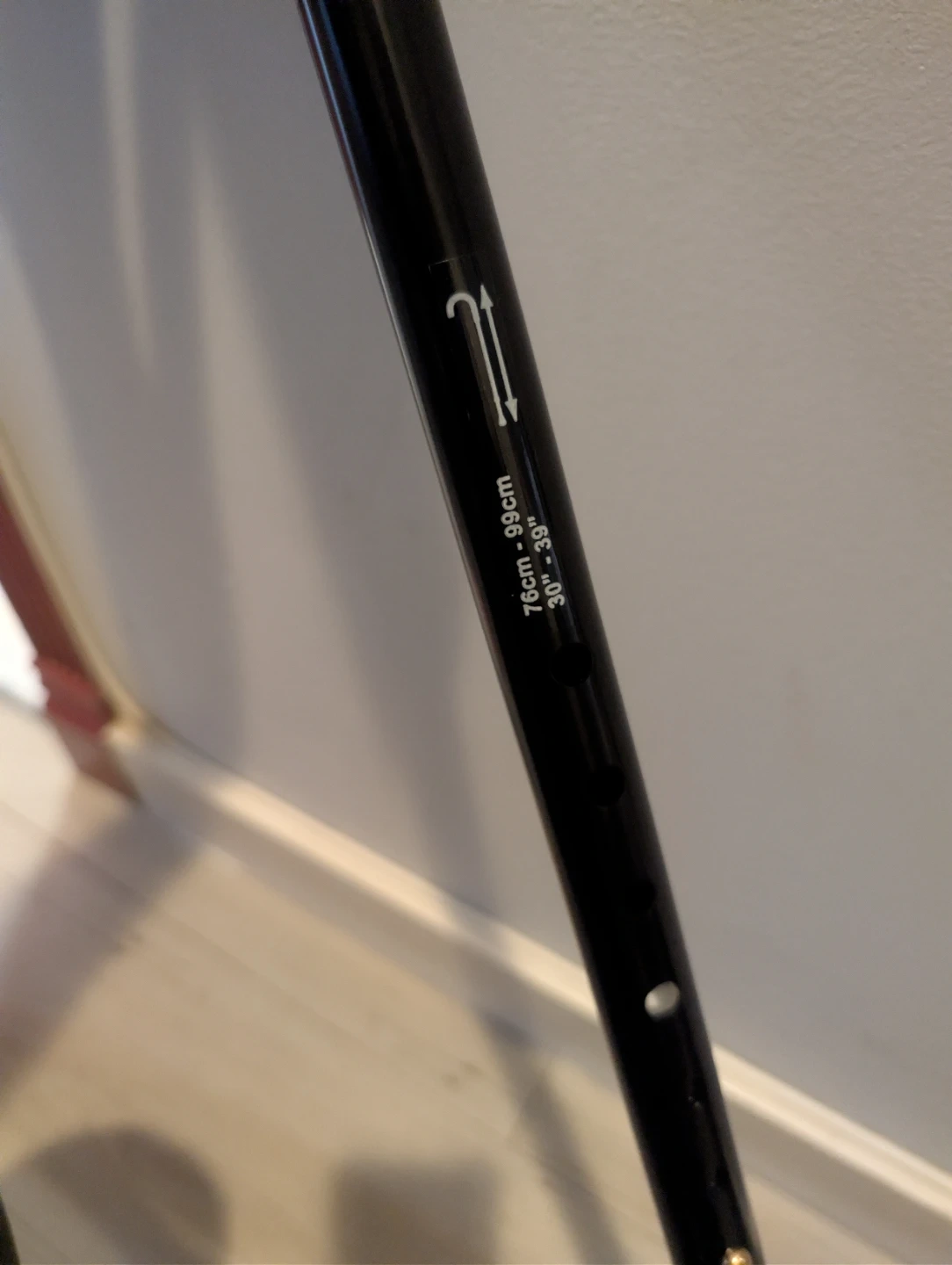 Selling a Cardinal Health adjustable walking cane. It's black and can be adjusted from 76cm to 99cm (approximately 30" to 39"). The maximum weight capacity is 250 lbs