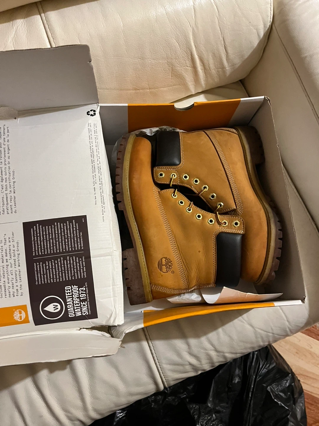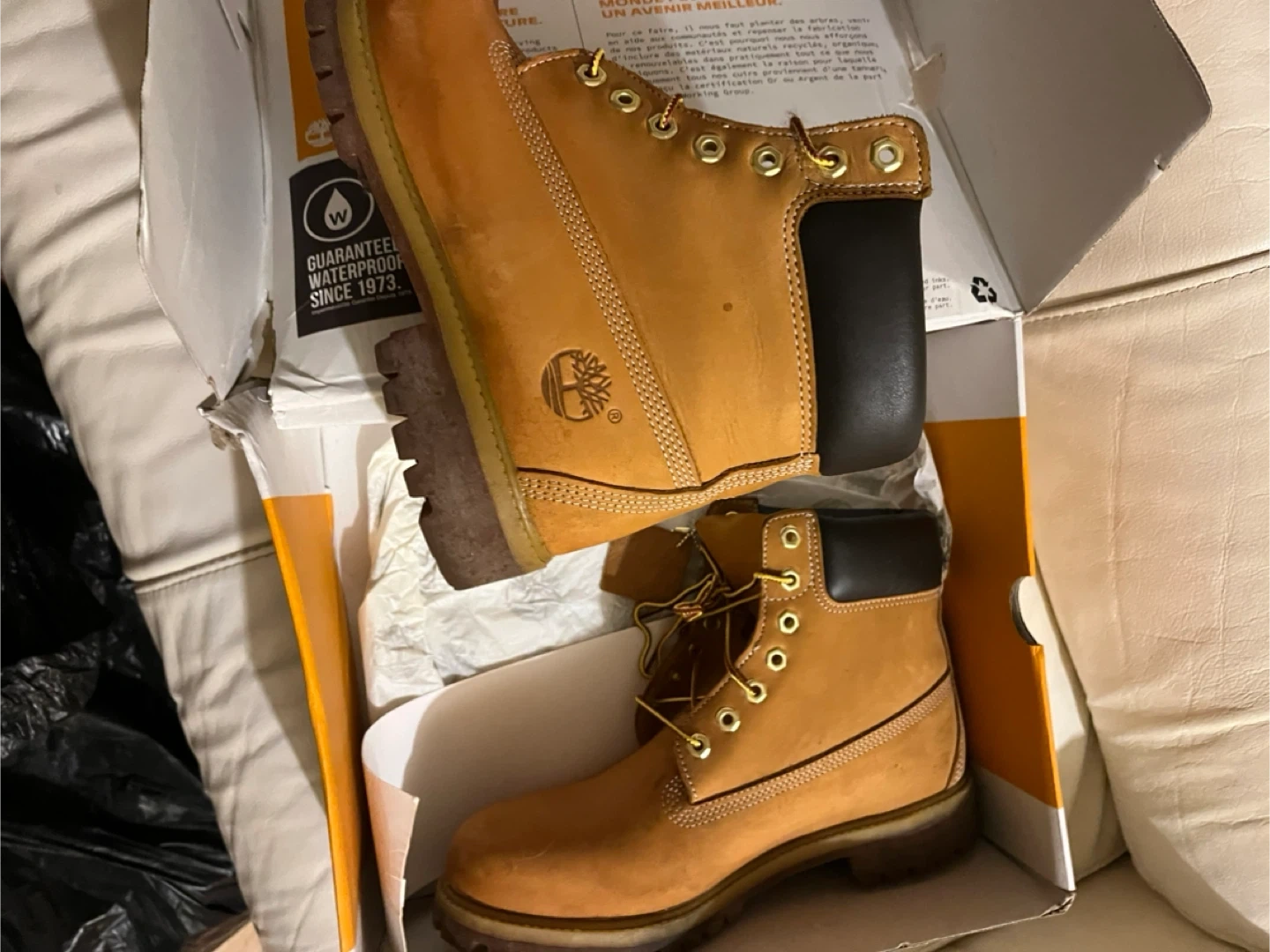 Selling a pair of Timberland 6-Inch Premium Waterproof Boots! These classic boots are in great condition and come with the original box. They are guaranteed waterproof since 1973, so you know they're durable and reliable. Perfect for any weather!