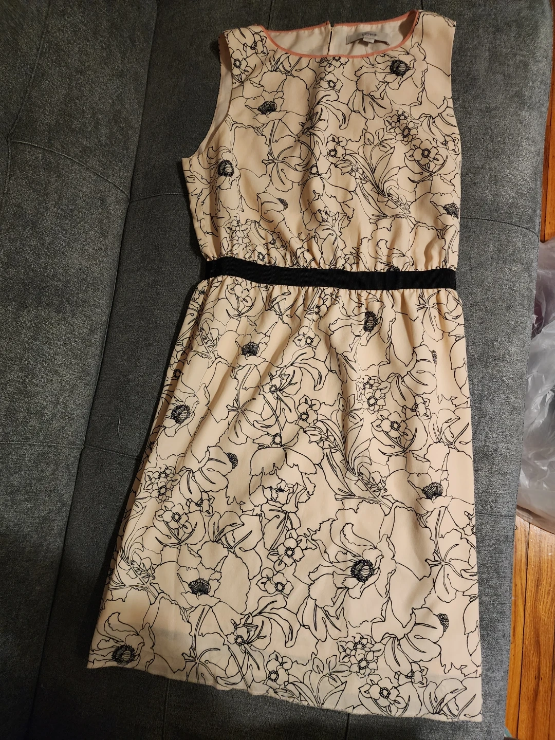 Selling a cute LOFT dress with a floral print! It's a size small and features a black belt detail at the waist. Perfect for a casual day out or a summer event