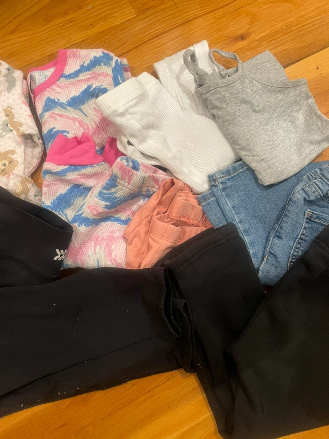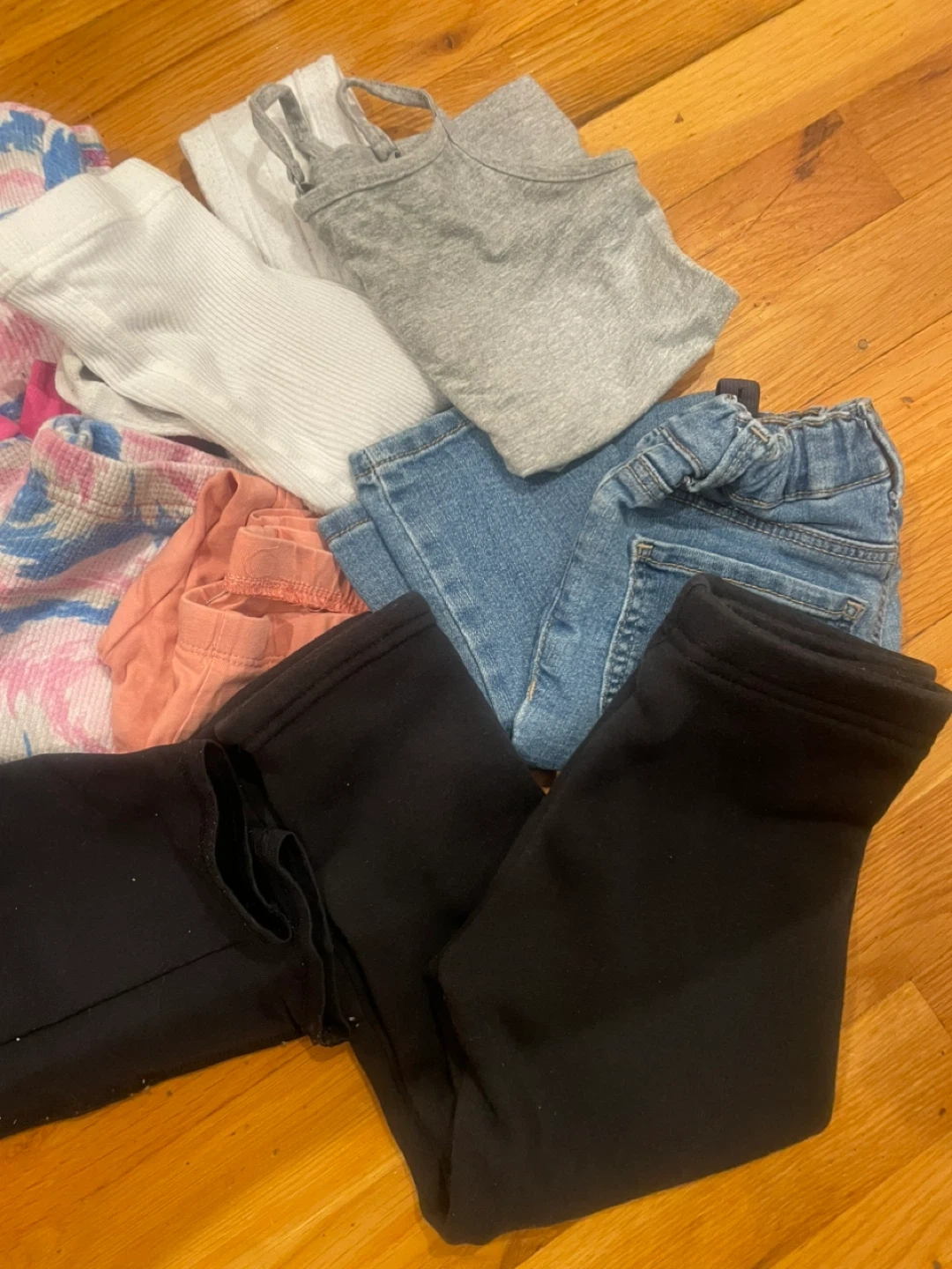 Selling toddler clothes! Includes items like leggings, tops, and jeans in various colors and sizes. Perfect for stocking up on essentials for your little one
