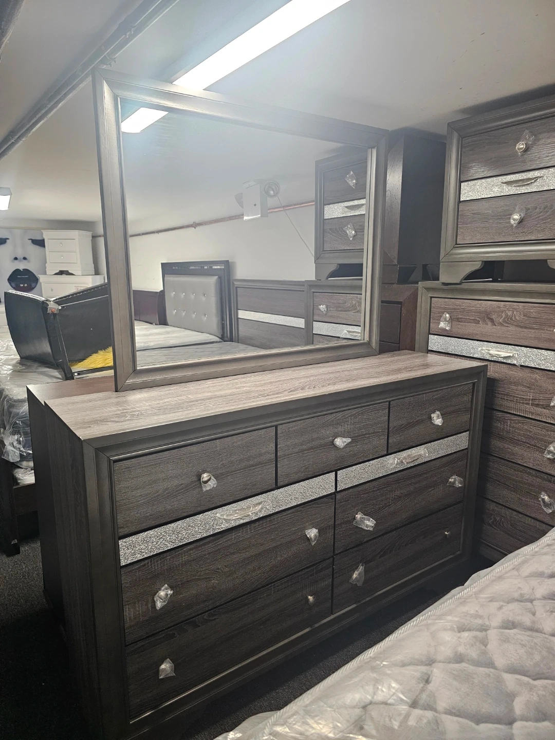 Bedroom Set with Dresser, Mirror, Nightstand, chest, Bed Frame