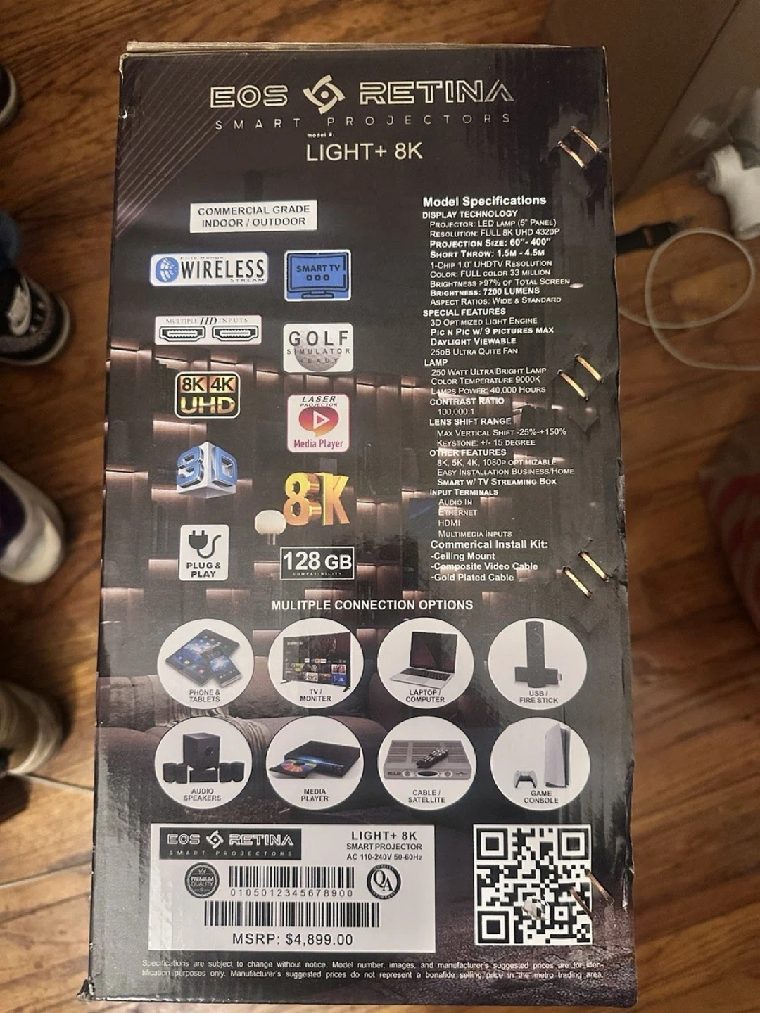 Selling a brand new EOS RETINA LIGHT+ 8K Smart Projector! It's still in its original packaging.